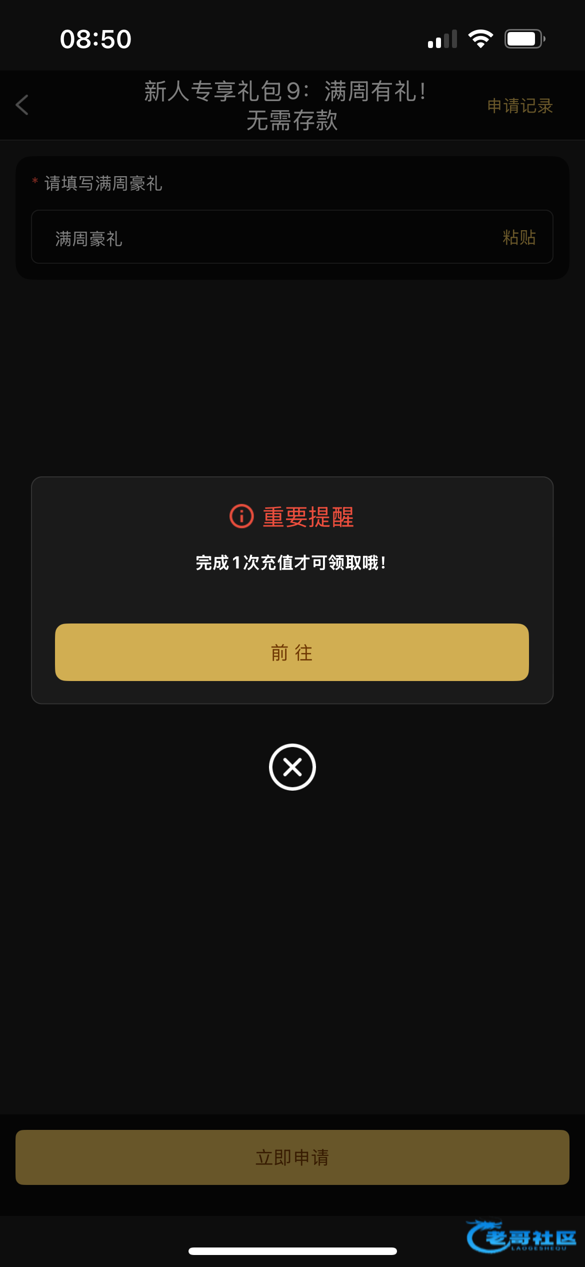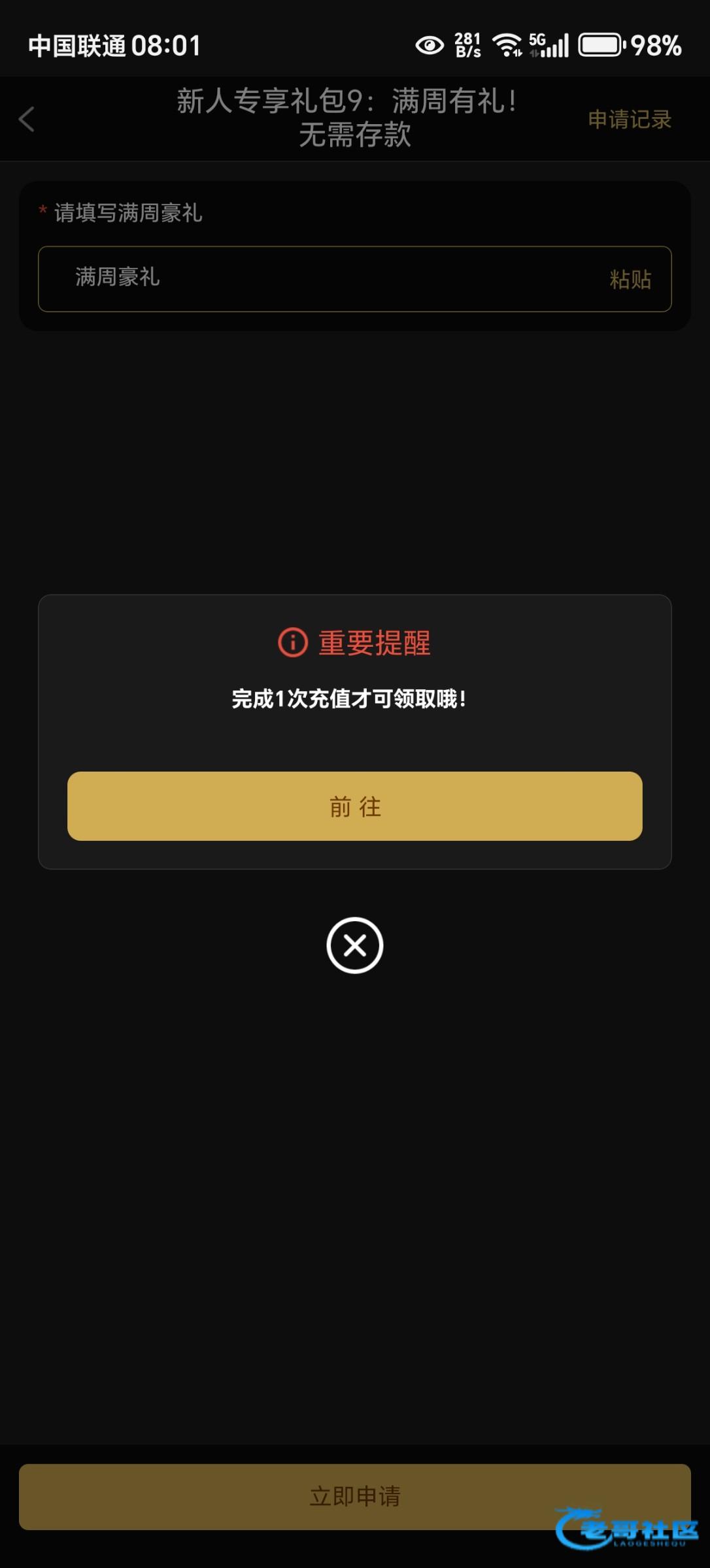 你个傻子,要充值才能申请