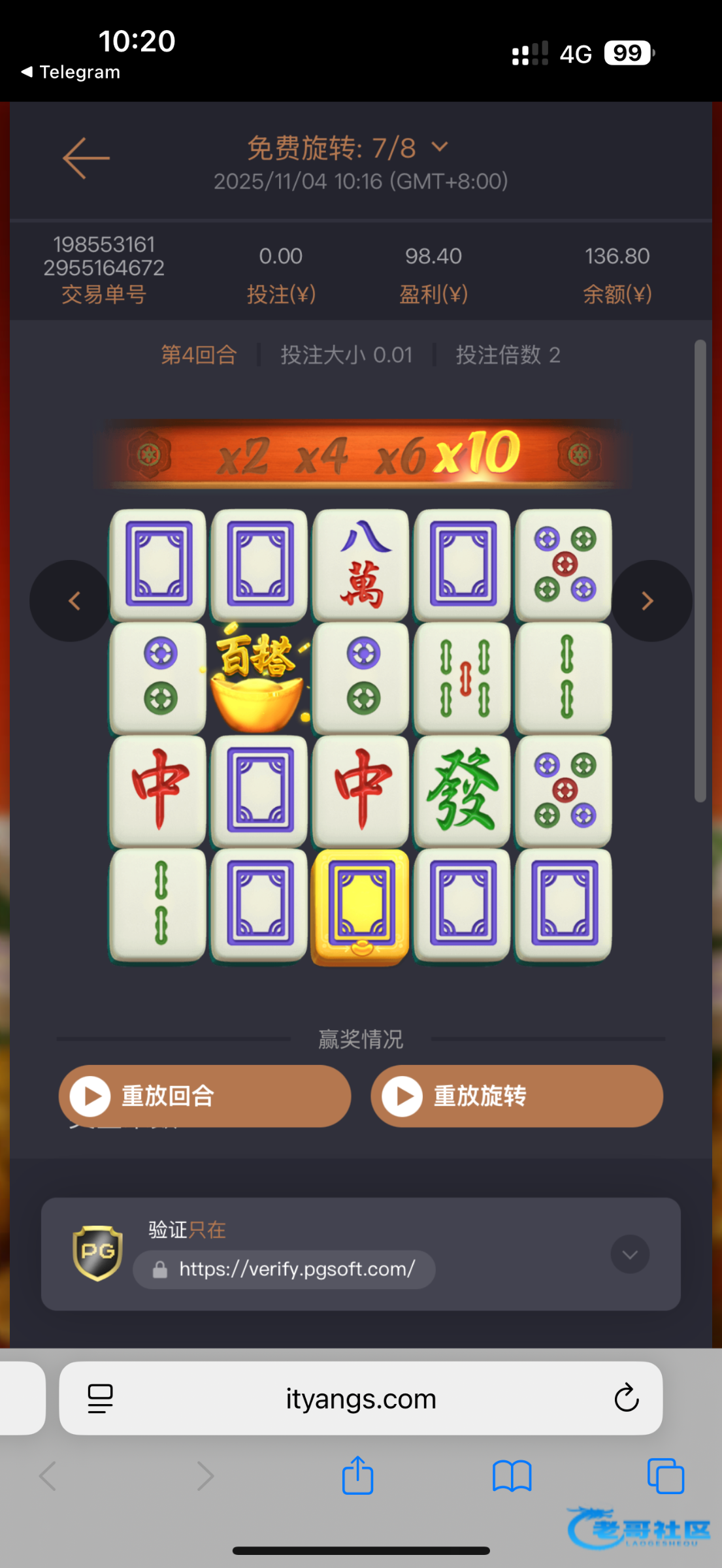 领到5次红包,打出来一次,麻一两毛一拉爆到65,墨西哥4毛一拉,第三次就爆了80多,一共146