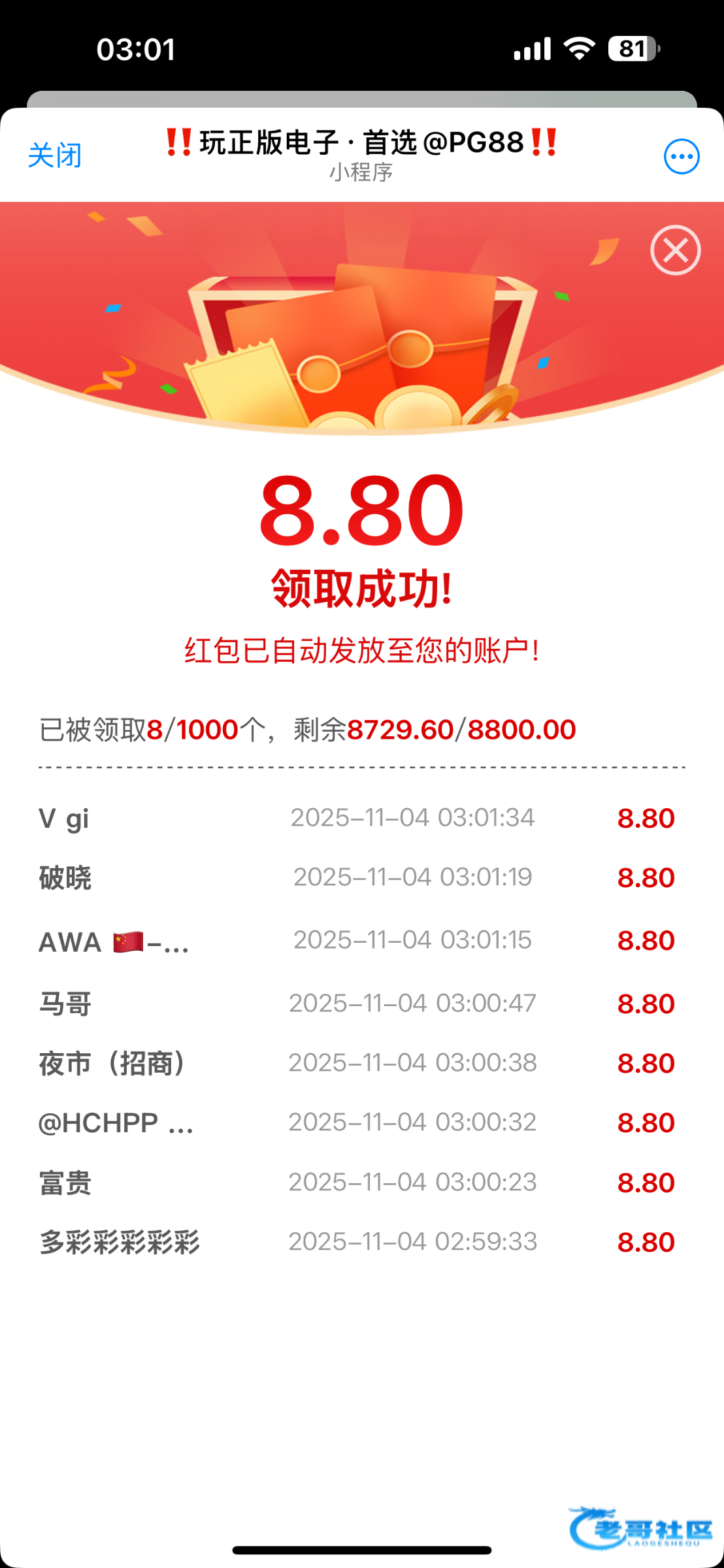 领到了 第一下就进免费6毛免费炸2.4然后就死了12下免费空11下