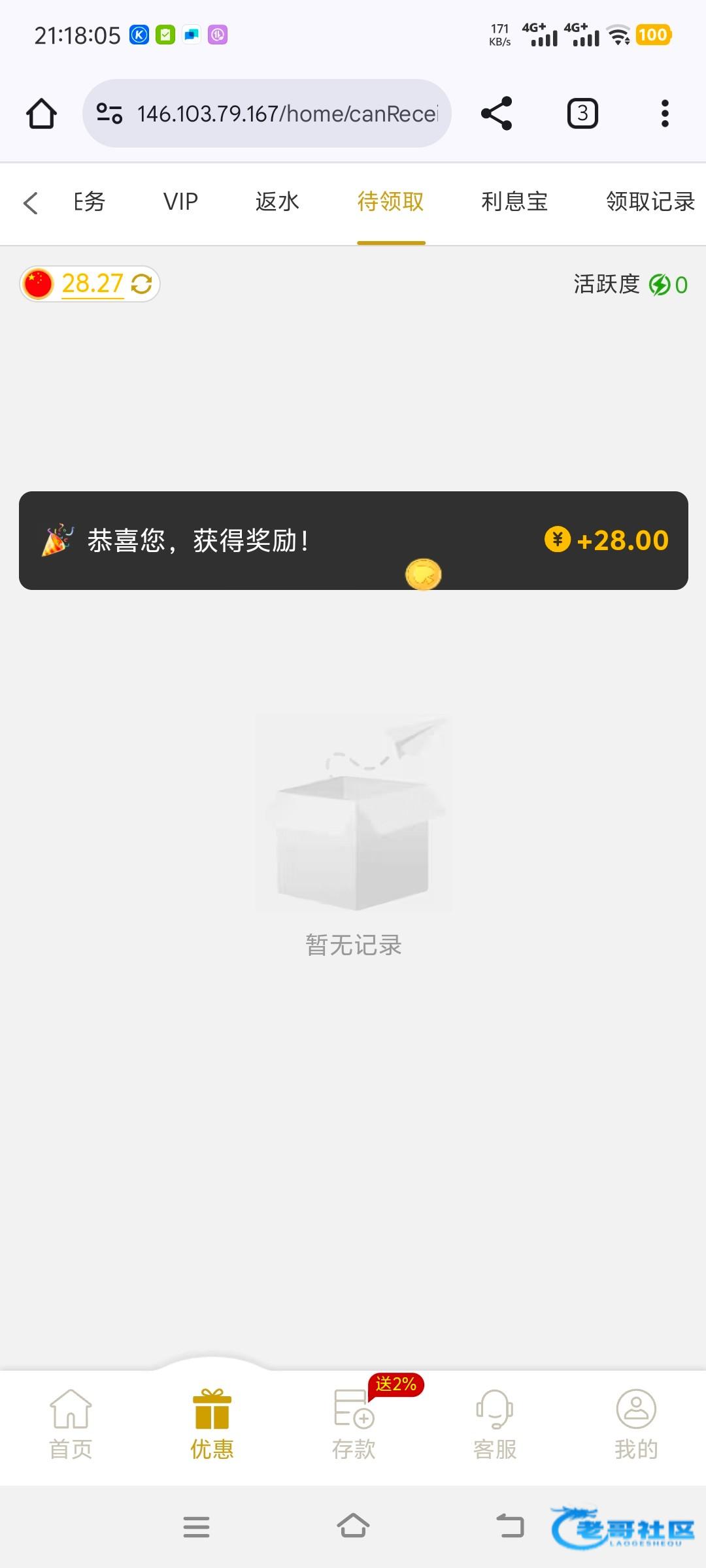 第一次注册领了8,没一点水