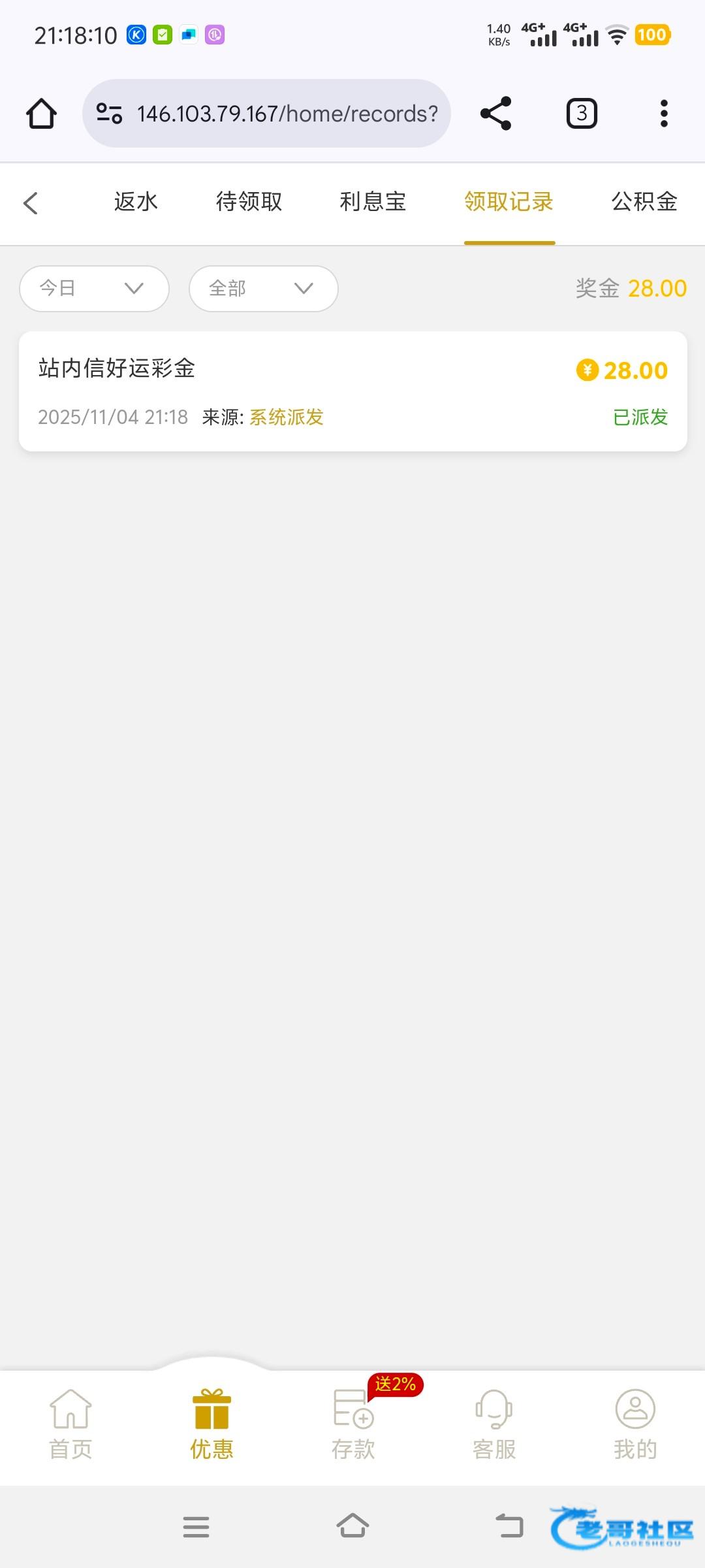 刚注册,领取了8彩金