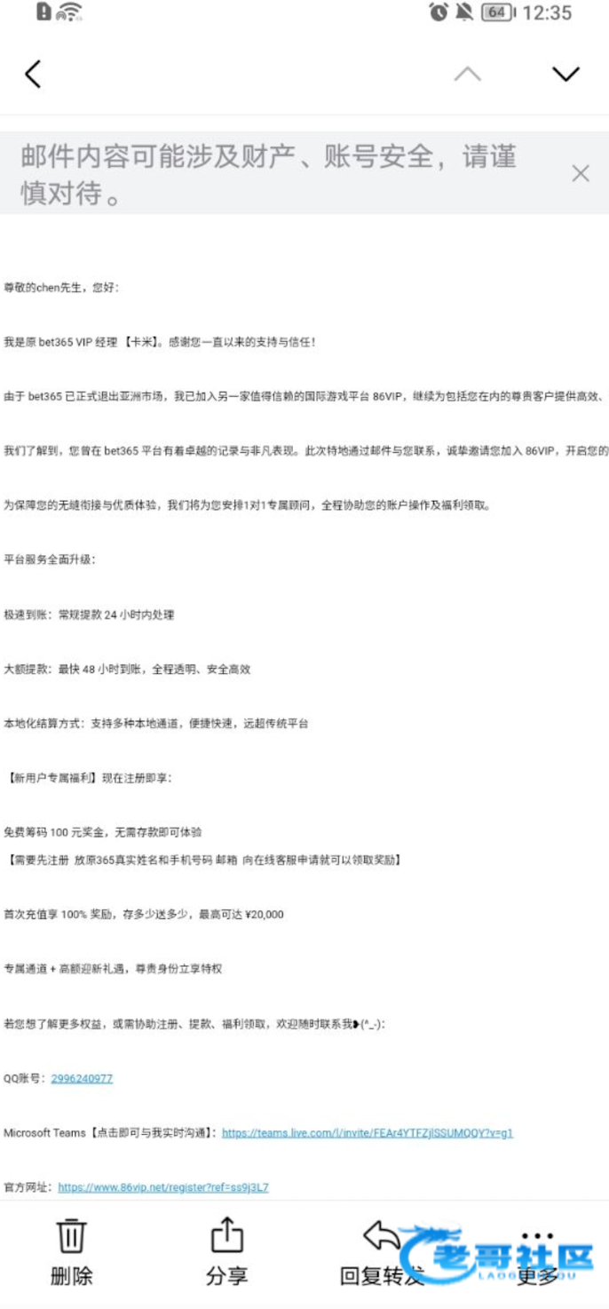 这个博彩公司总部在墨西哥。也不算碰瓷,碰瓷是话也就不会知道以前的365原账户了。。