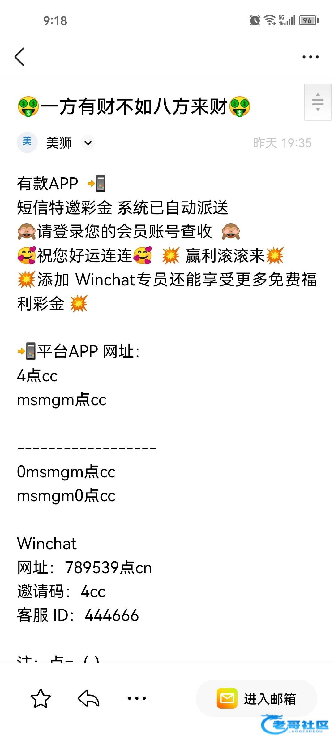 前两天注测好绑定银行卡手机号邮箱发送短信的当时以为不会送,发了几个小时都没送,今天看邮箱说送了上号看真的有链接4.cc