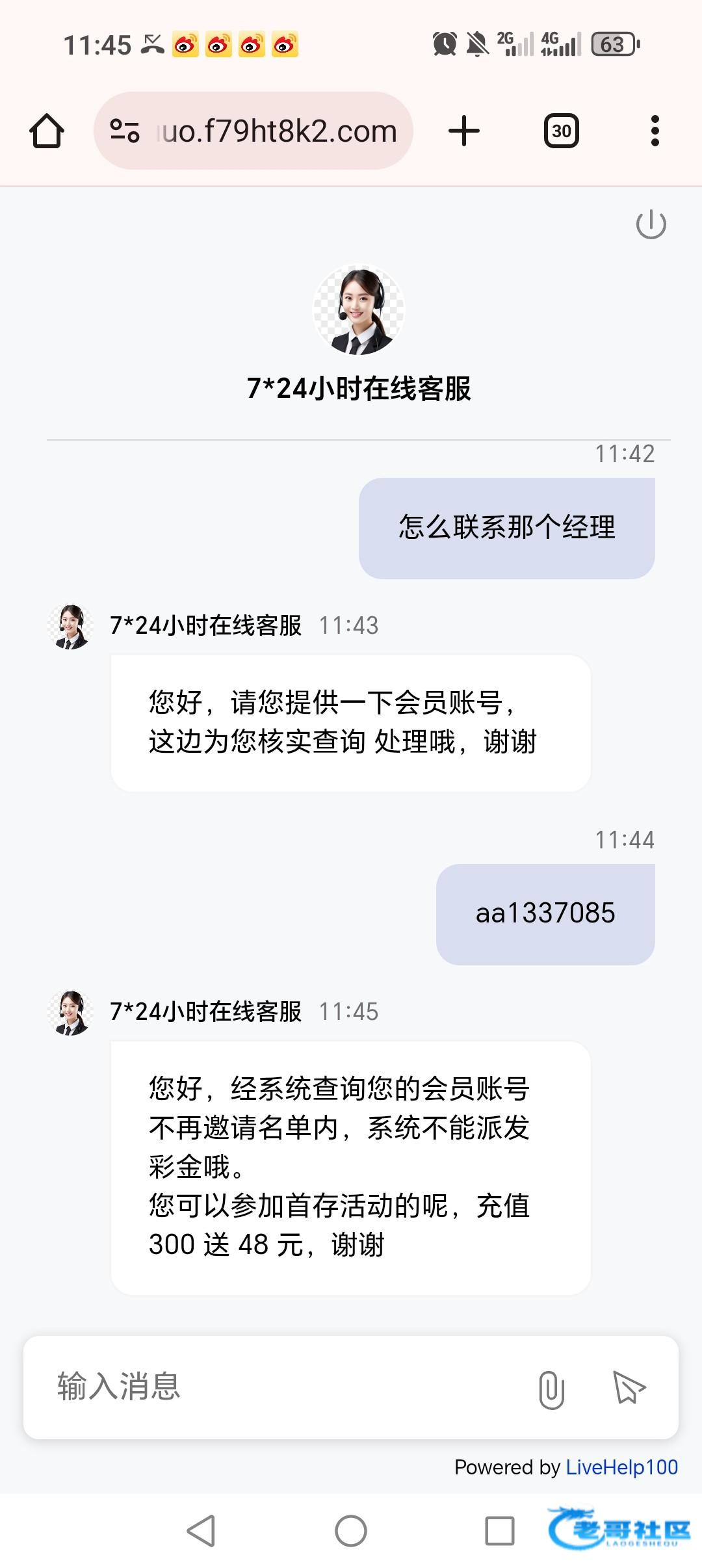 您好,经系统查询您的会员账号不再邀请名单内,系统不能派发彩金哦。您可以参加首存活动的呢,充值300 送 48 元,谢谢