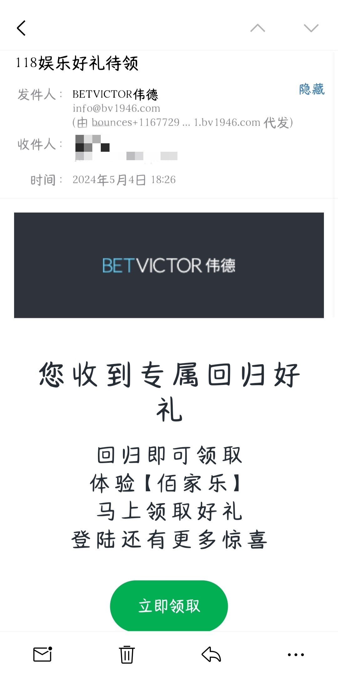 韦德送118回归彩金,新用户跳过,老用户自己看邮箱