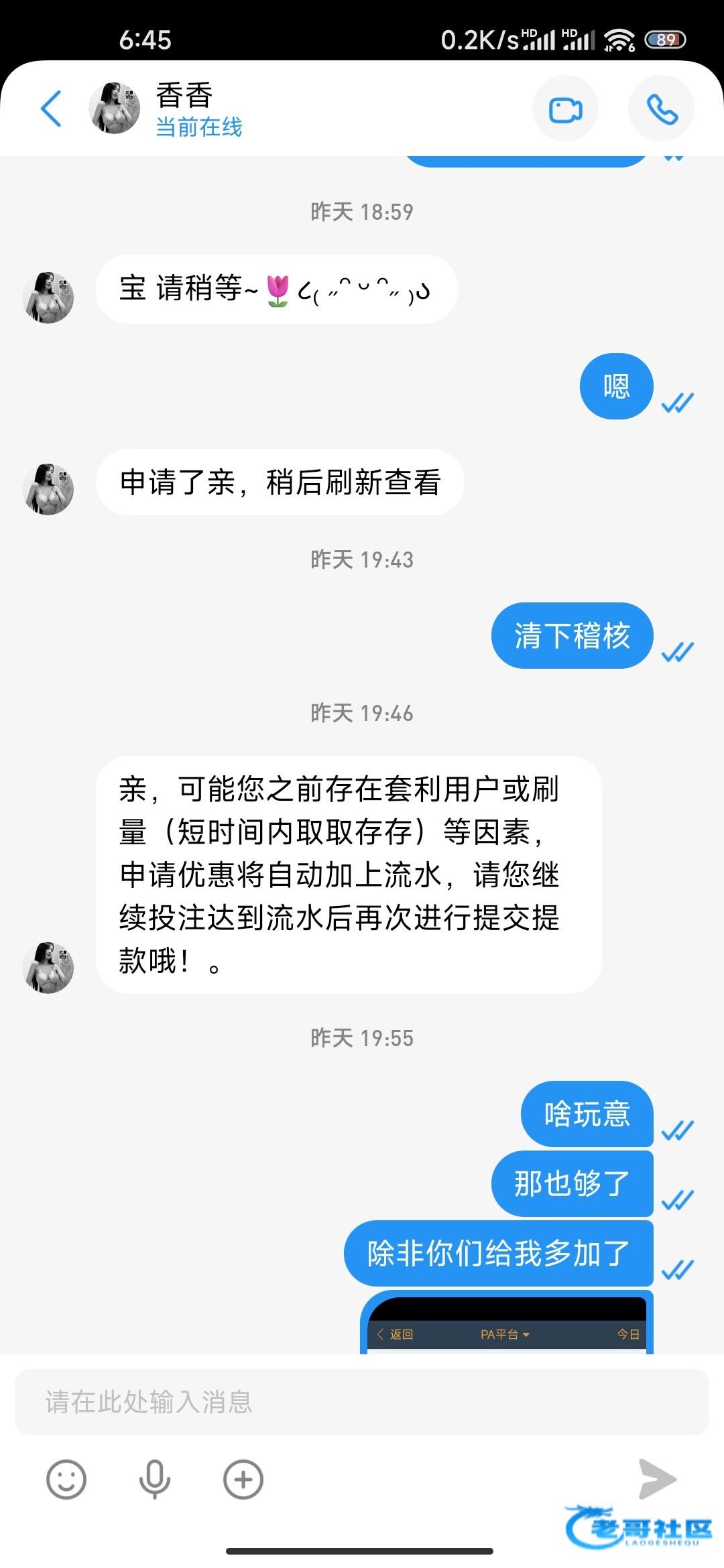 这个出生台,每次流水都半天不更新,明明早就超流水了。之前我还真以为是流水更新的慢,有一次我就不信邪睡了一觉,等了七八个小时,流水稽核还在哪。只要申请优惠,绝对会给你偷偷多加流水。具体加多少也不会告诉你,一问就是不够,让继续游戏,差多少是绝对不会说的。等你输完了,跟她说你输完了,不到一会,稽核马上给你清掉。