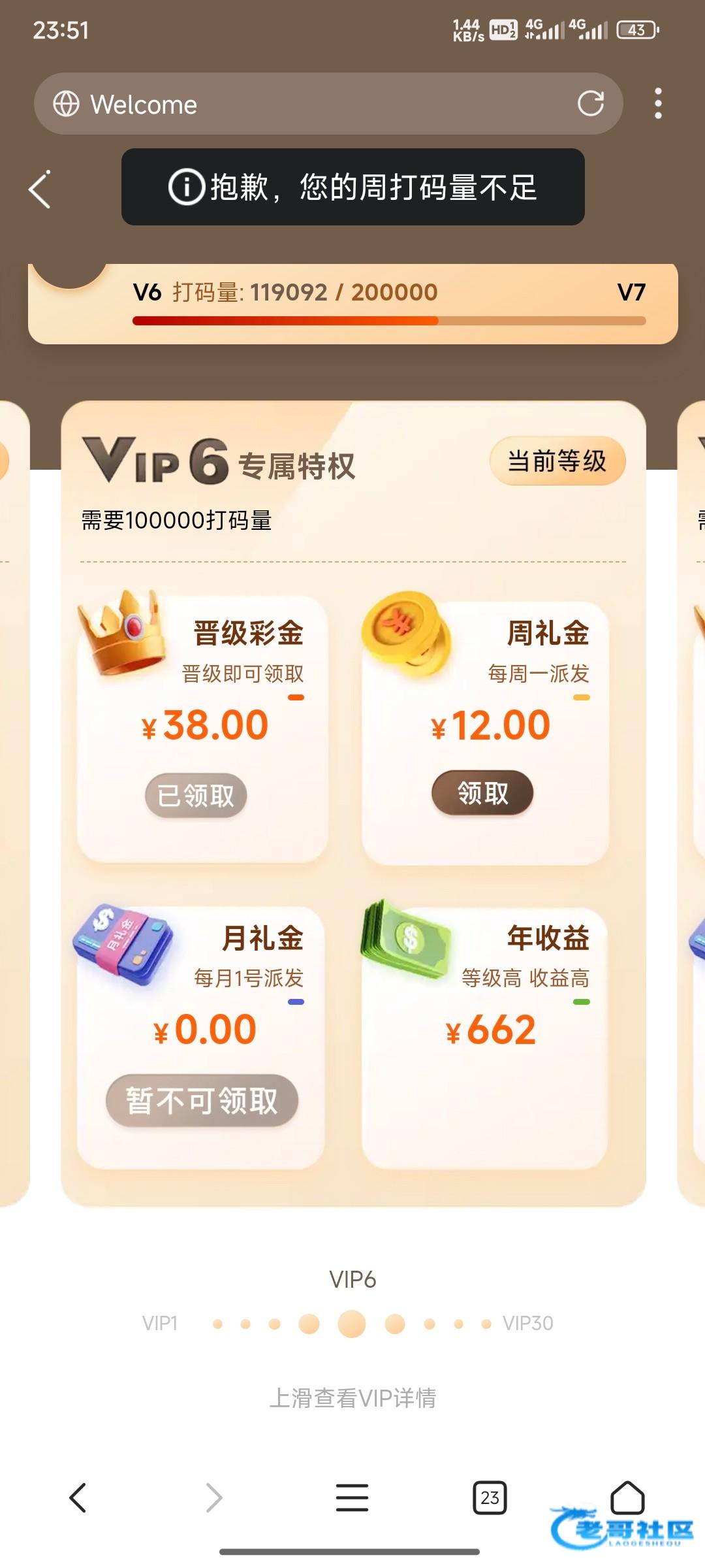 我的保时捷1.5w流水闯关还差400流水能领88彩金。这狗台子输了两千多一分没提过