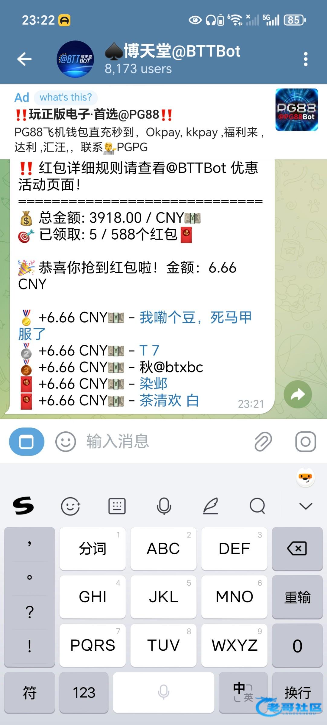 前十个领红包的有三个我的号,一个没打出来