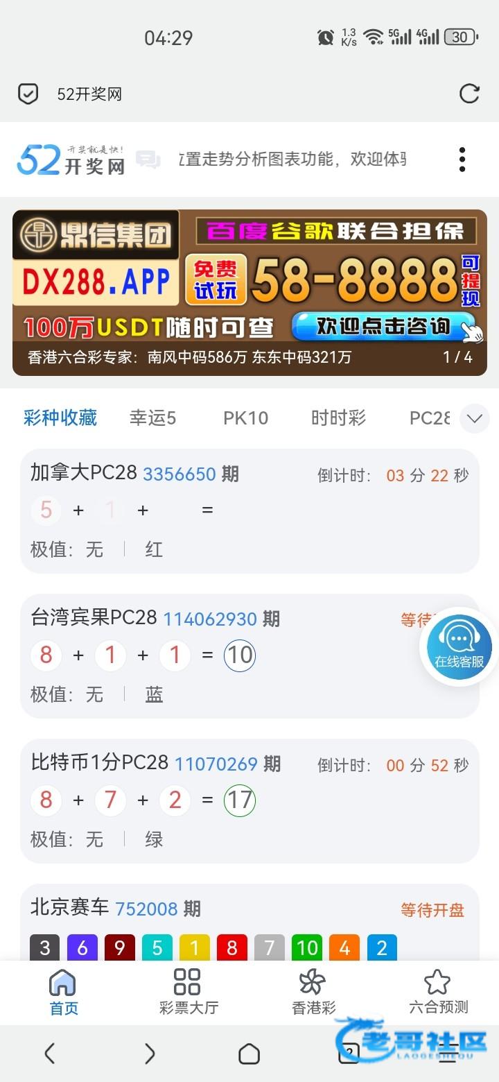 (鼎信28 牛牛28 众发28 开元28 )这四个台子入口是通过预测网广告进 网址 52kj.app 这网页上有4个广告,左右划可以切换