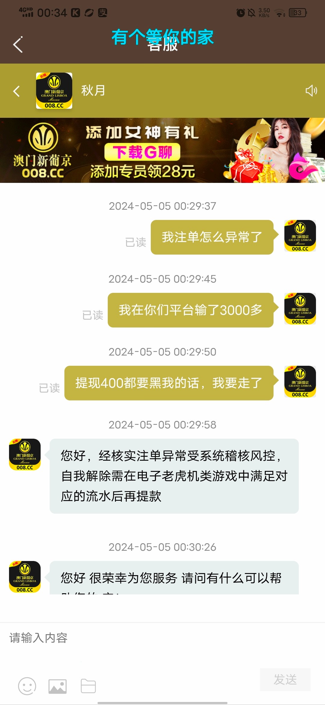 008大黑台,他们家的热门电子全是控制的,450,6块一拉,一直空,我在他们平台充值了5000多,只提现了2000,控制提现慢就算了,还黑,大家注意