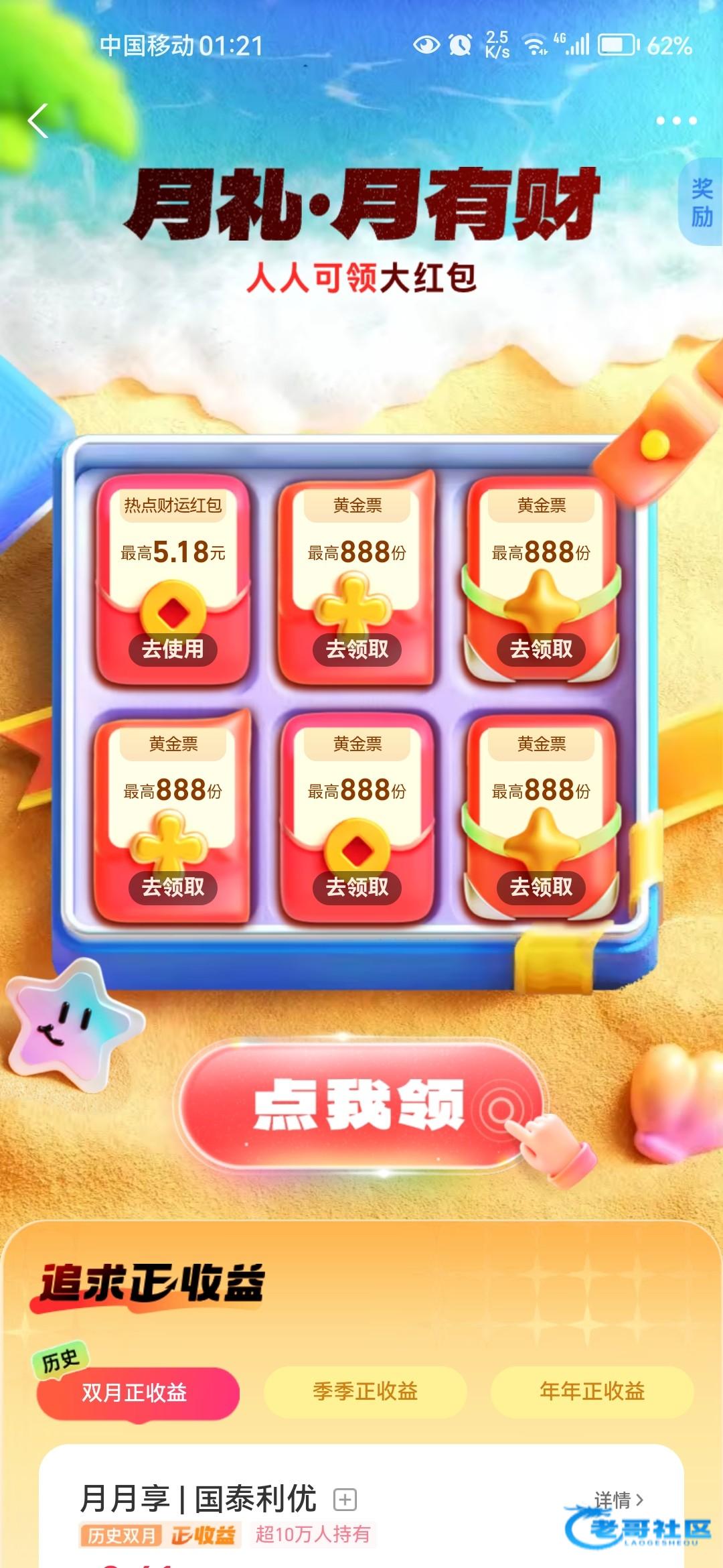 先进入支付宝点击首页下方理财,进入理财页面在上方搜索栏搜 “月礼” 进入到活动界面先把6个红包打开,再点击下方提现,不管领多少先点进提现,进去是转盘活动,下面有一个加10次转盘的任务就可以直接做任务,没有任务的是黑号领不了,任务是开通国信证券账户,应该大多数老哥基本没开过,因为我是领到账了所以后面页面和没领过的不一样,做的可能没那么详细,老哥们看不懂可以参考抖音视频
