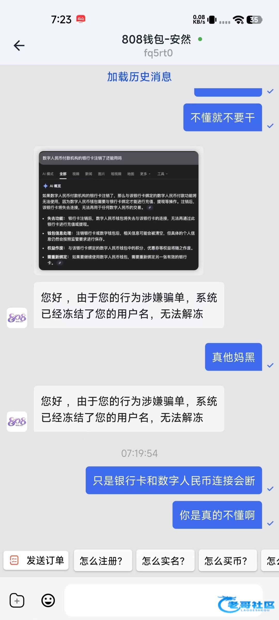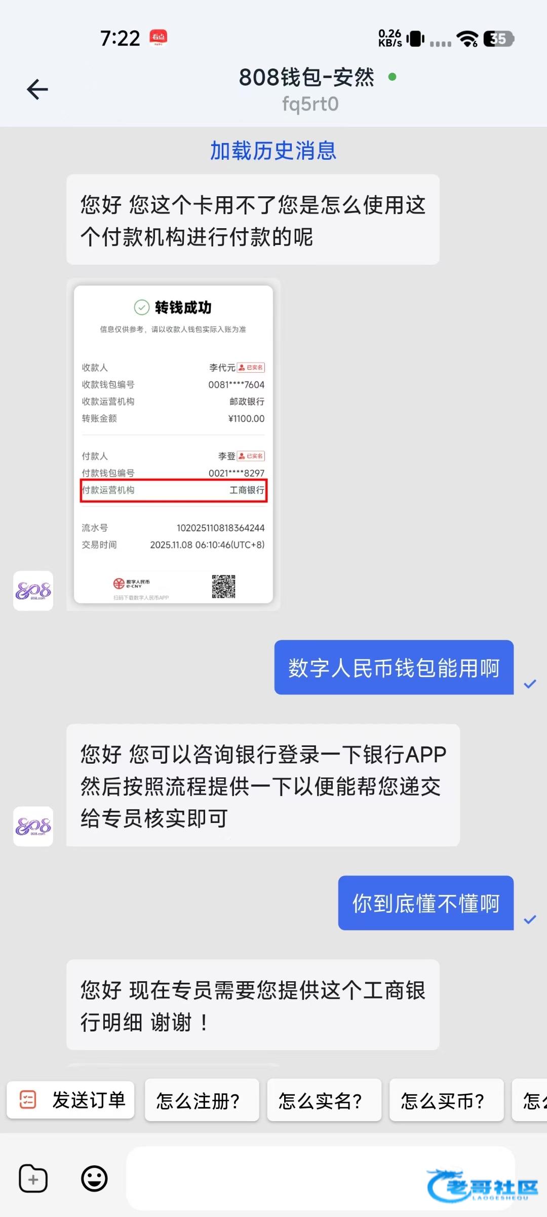 妈的808钱包不懂数字人民币和银行卡的,一直让我提供银行卡的明细,我他妈的在数字人民币转的钱关银行卡什么事啊提供不了就黑了我1100这他妈的服了