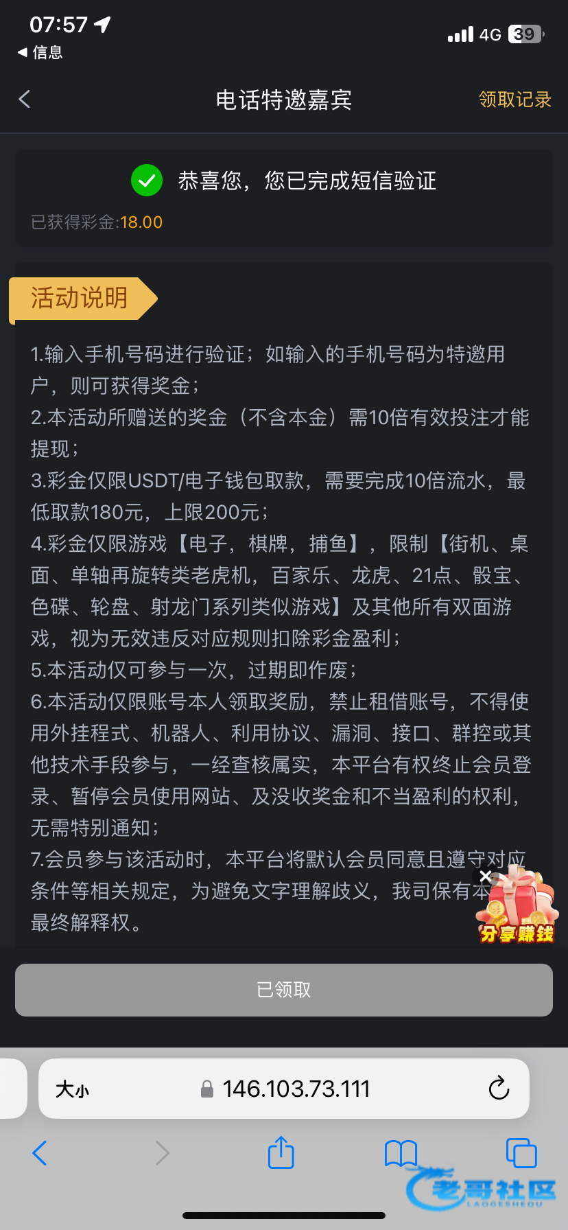 之前注册几天就打电话送了18,出了300