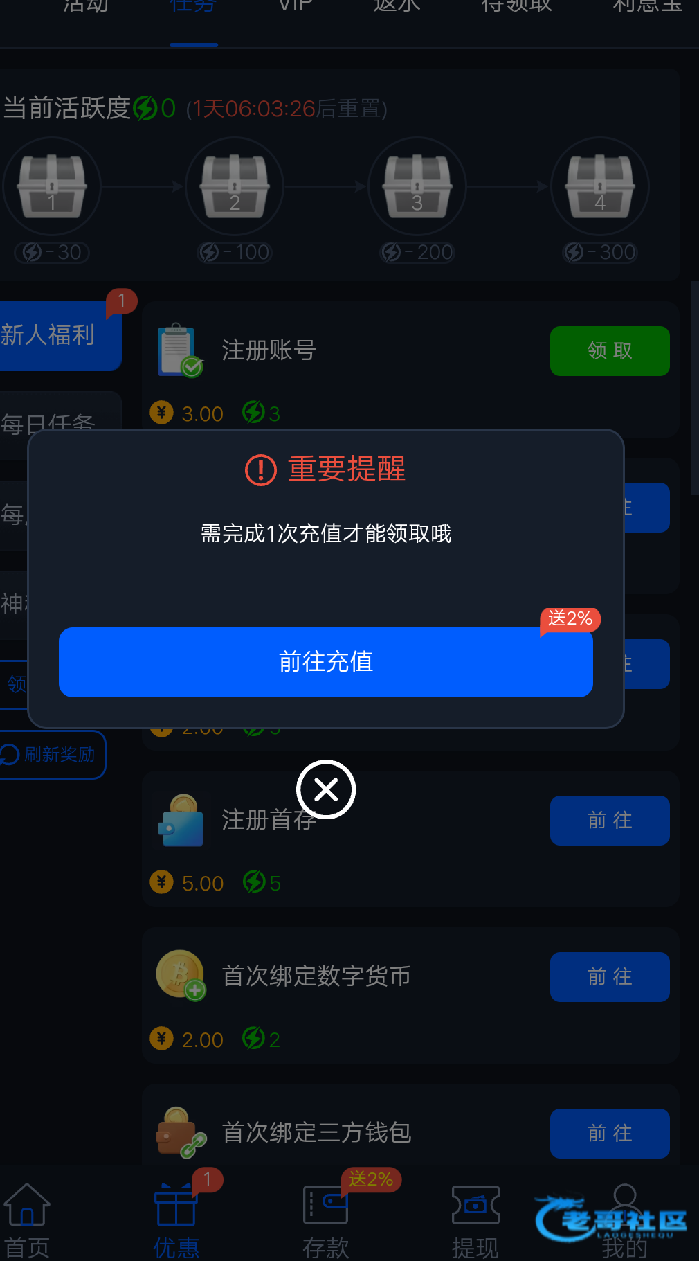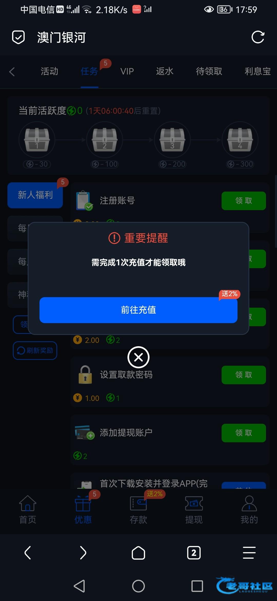 要充值一次才可以领