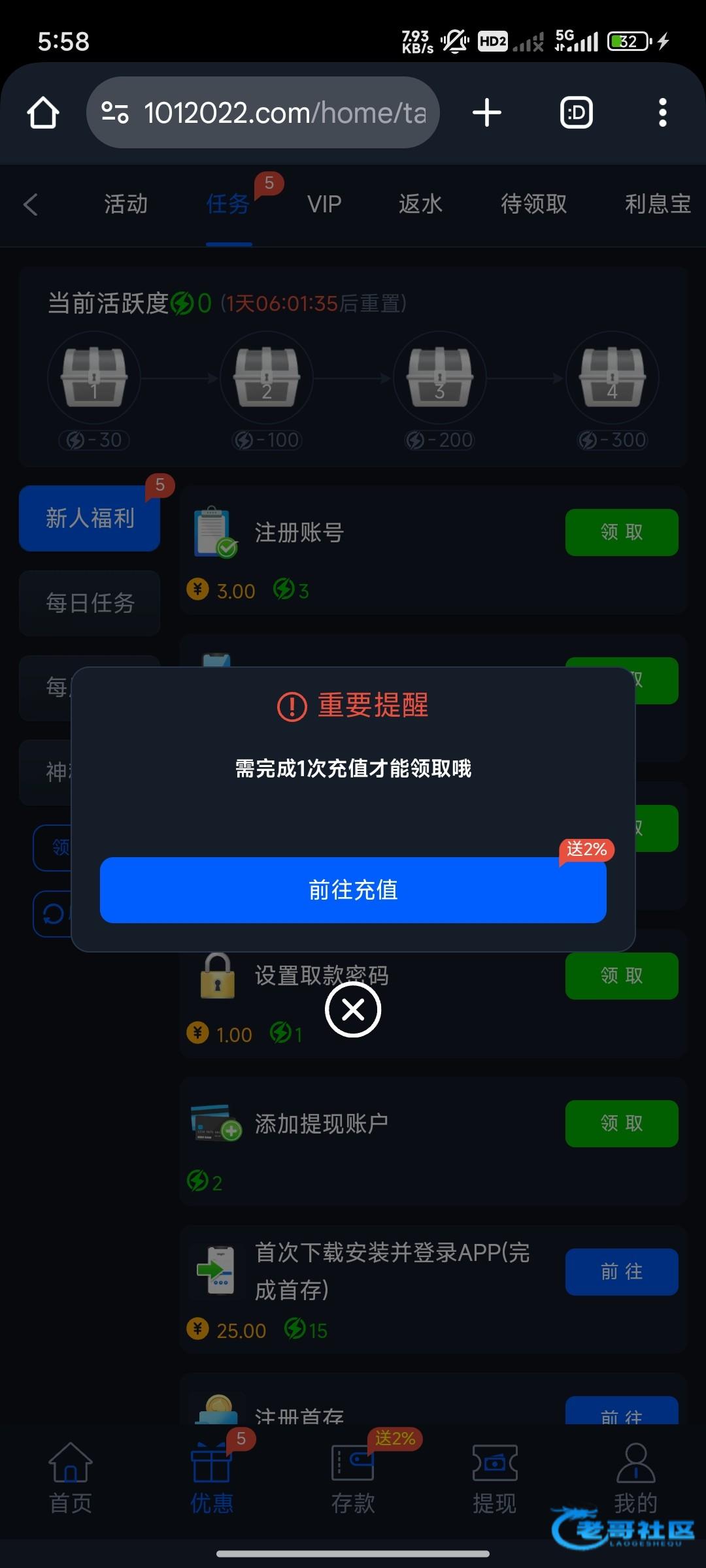 要充值一次才能领取