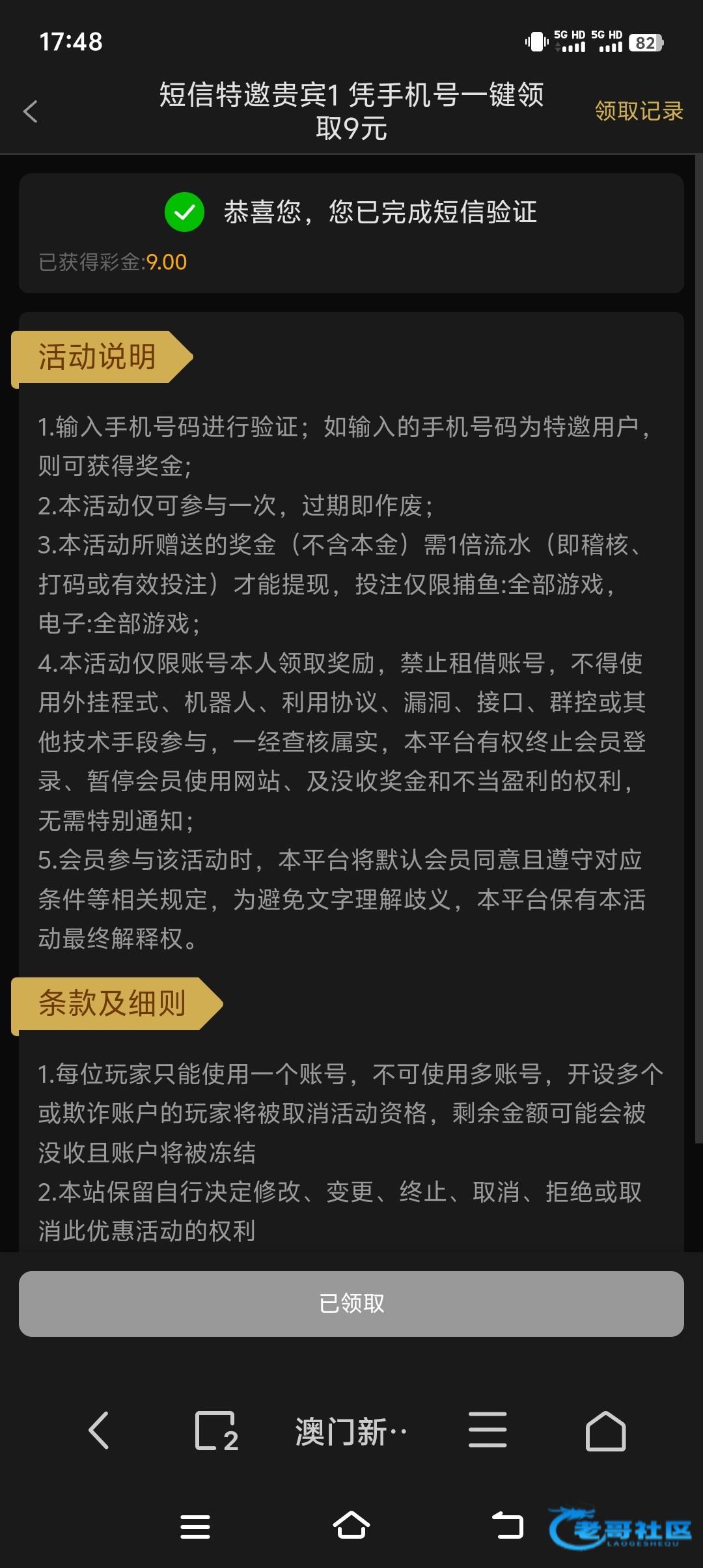 感谢,领了9拉麻将打了10流水