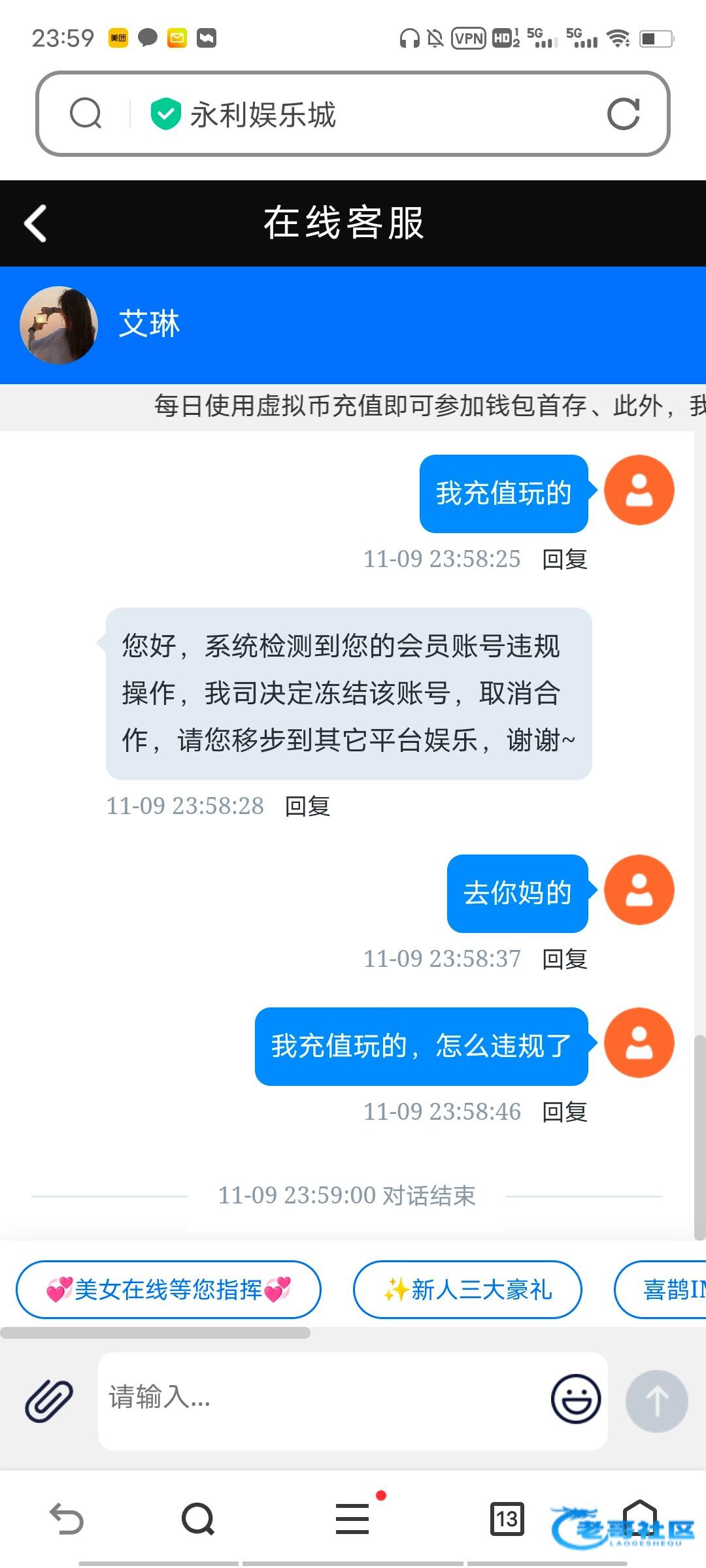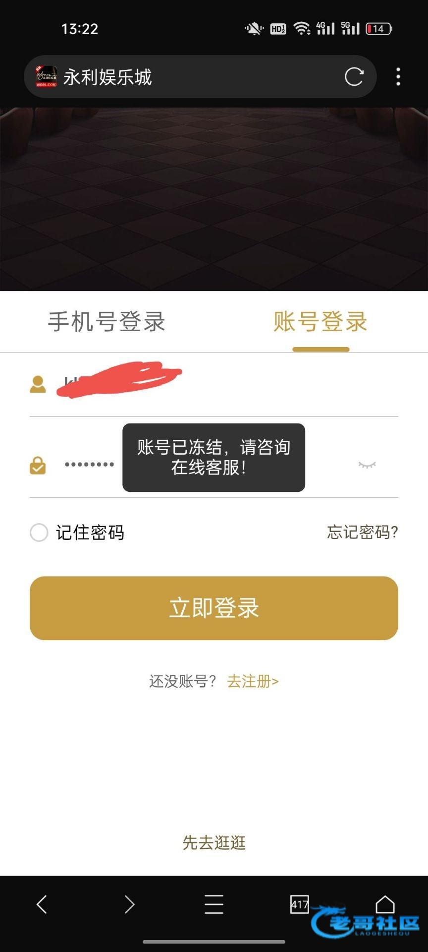 黑台,充值玩的,玩的开元棋牌,想退出来换个游戏,退出来就掉线了,登录提示号被冻结了