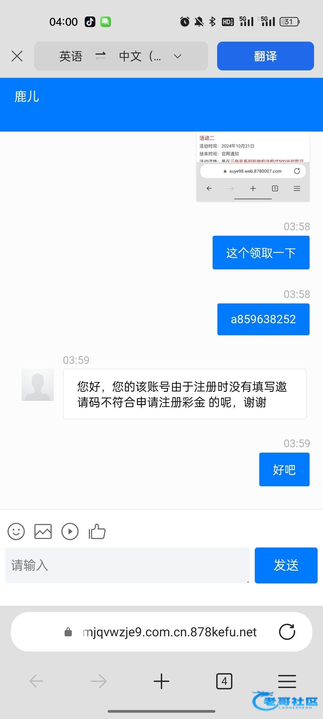别去了 才看见就去 傻逼客服说结束 彩票台送不起的