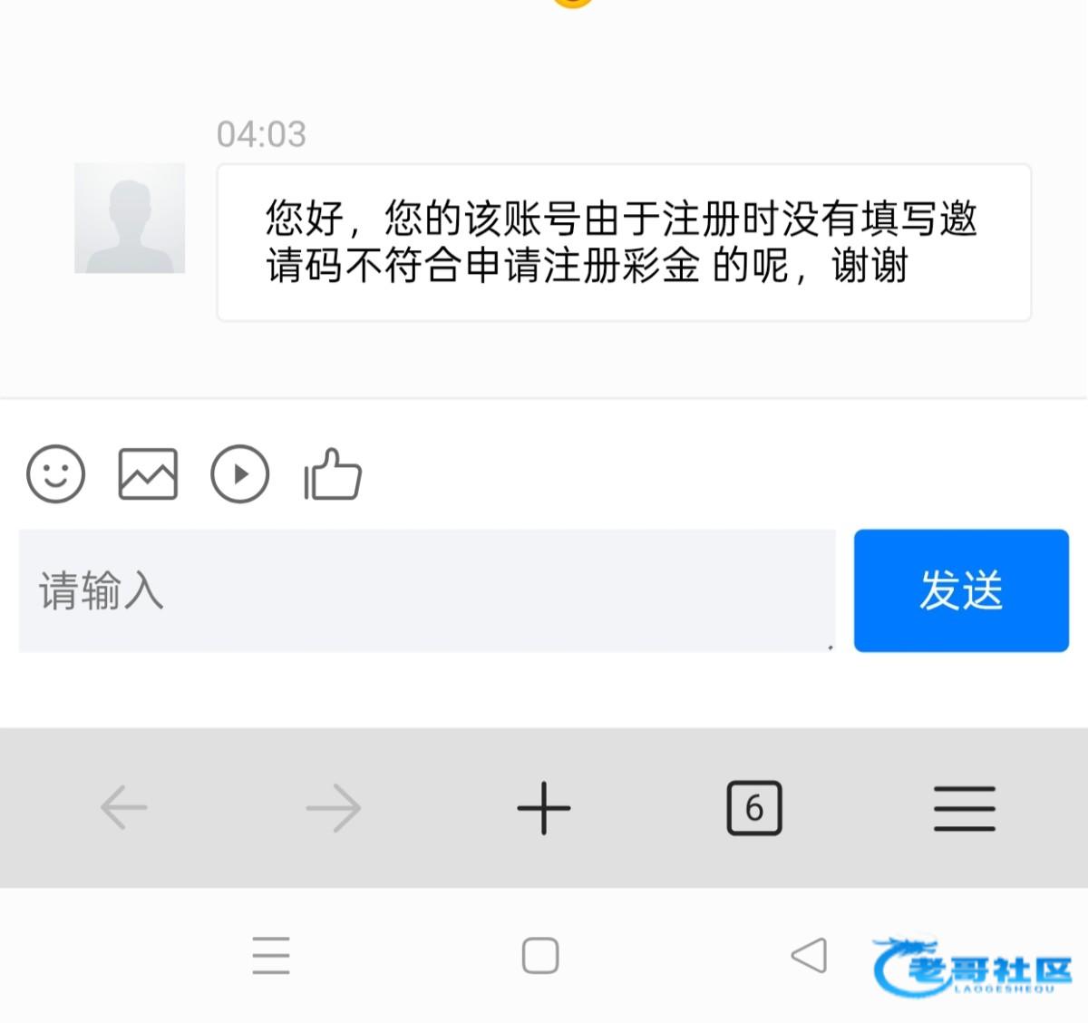 您好,您的该账号由于注册时没有填写邀请码不符合申请注册彩金 的呢,谢谢