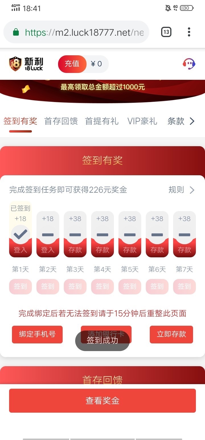 听说要充值的 而且好像是打满流水才能转出18,想赢钱的哥哥们别去了