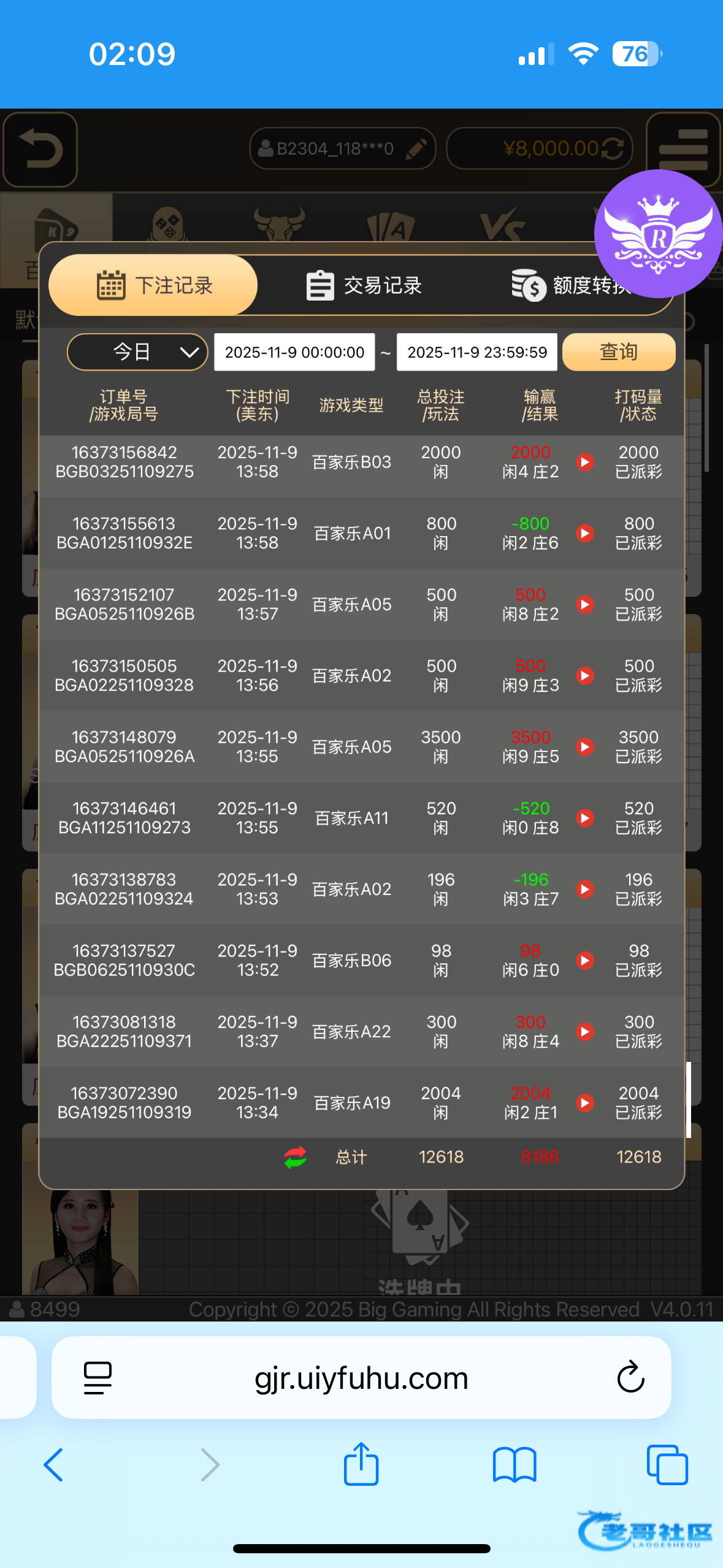 有个老哥发了一个30+38的博大下了588然后去别的台子充值下了2000 又去老哥稳台打国际人出了1w 国际人电子碧水没有16进159出20进180出 上头直接真人梭哈出了1w老几把刺激了