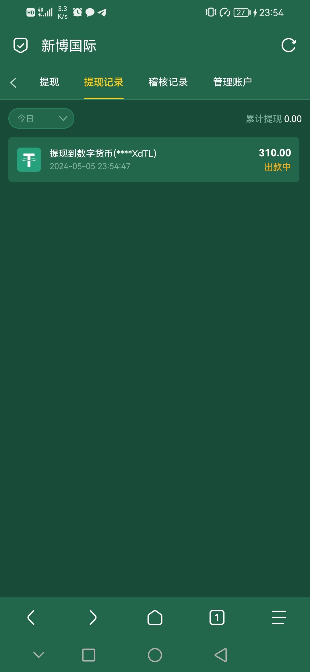 提了200,本来提3百的贪了,电子都没什么水,捕鱼也没水,大家流水打出来了,就提吧 都不用绑卡,提钱包秒到