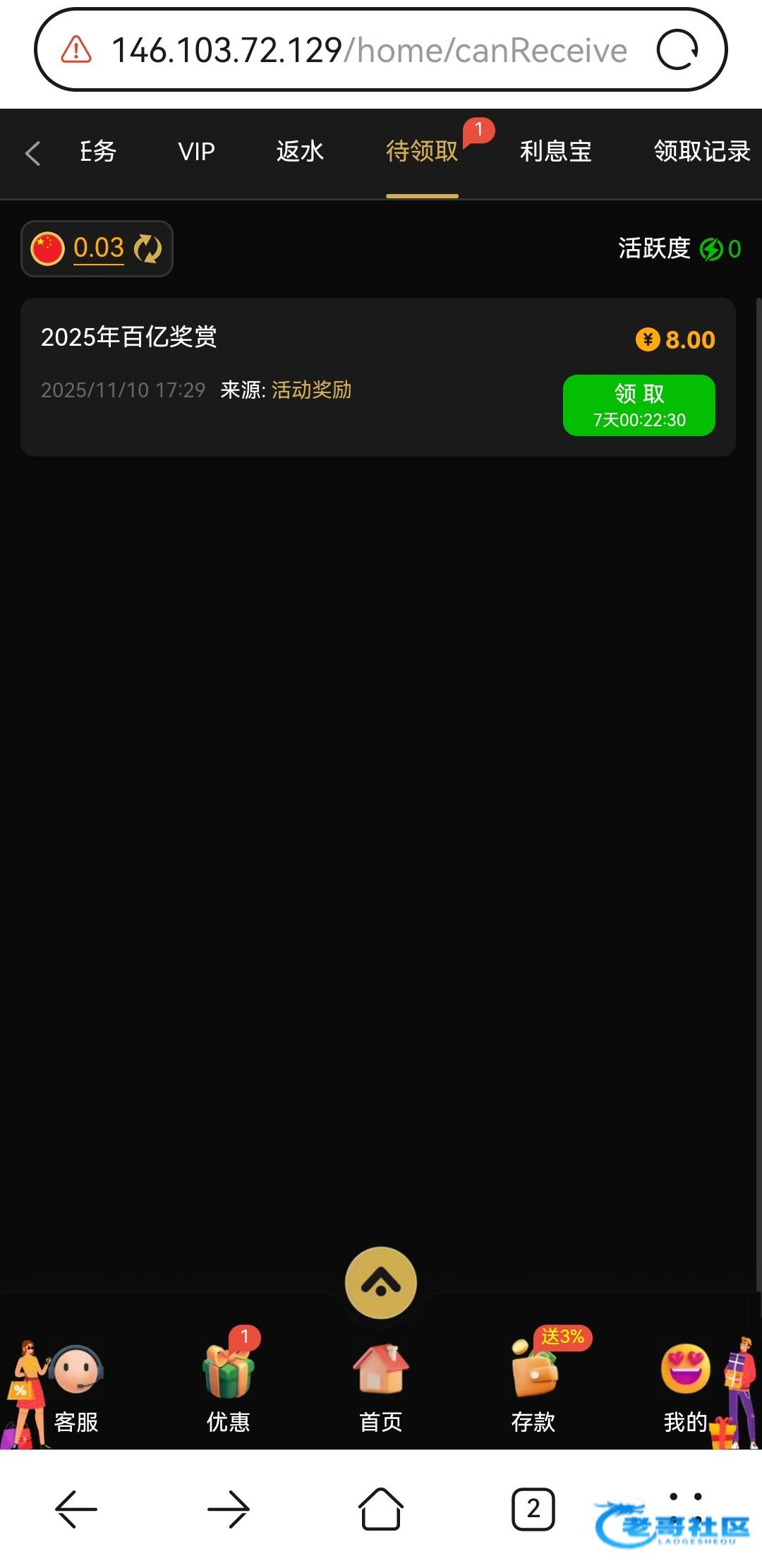 4545.com百亿奖赏活动领8元,有号的可以去看看,不知道是否需要充值,这个平台只充过10元,没有勿喷