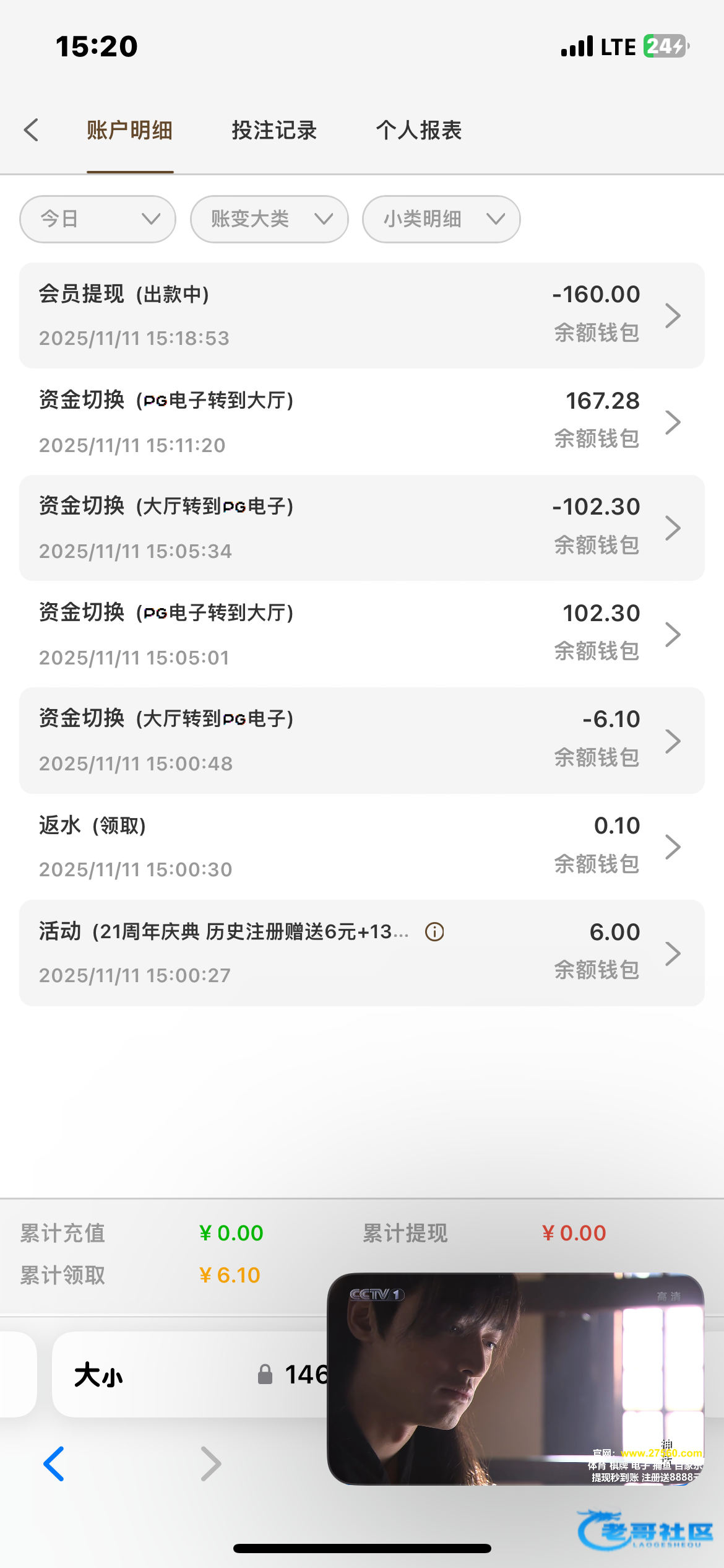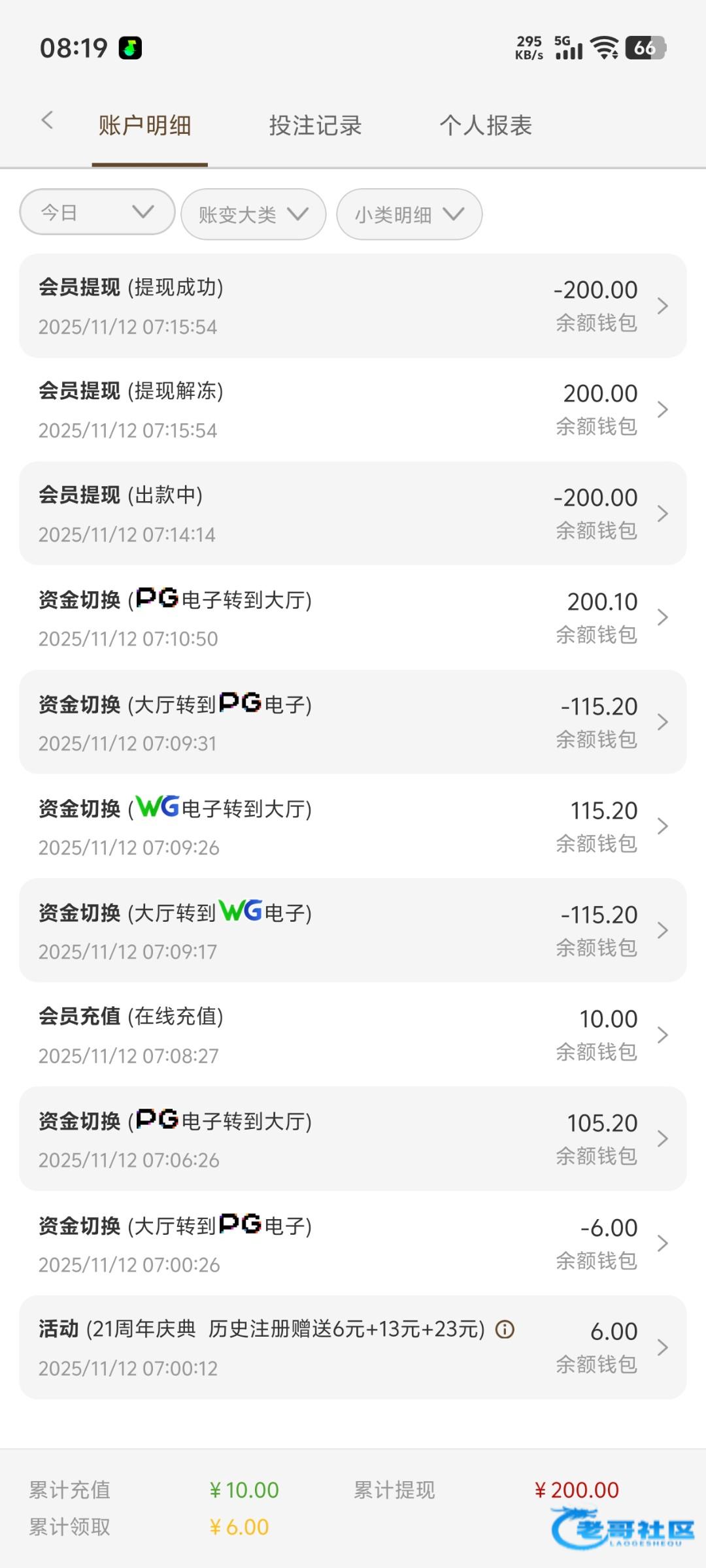 领6以后充了10,后面没水出50