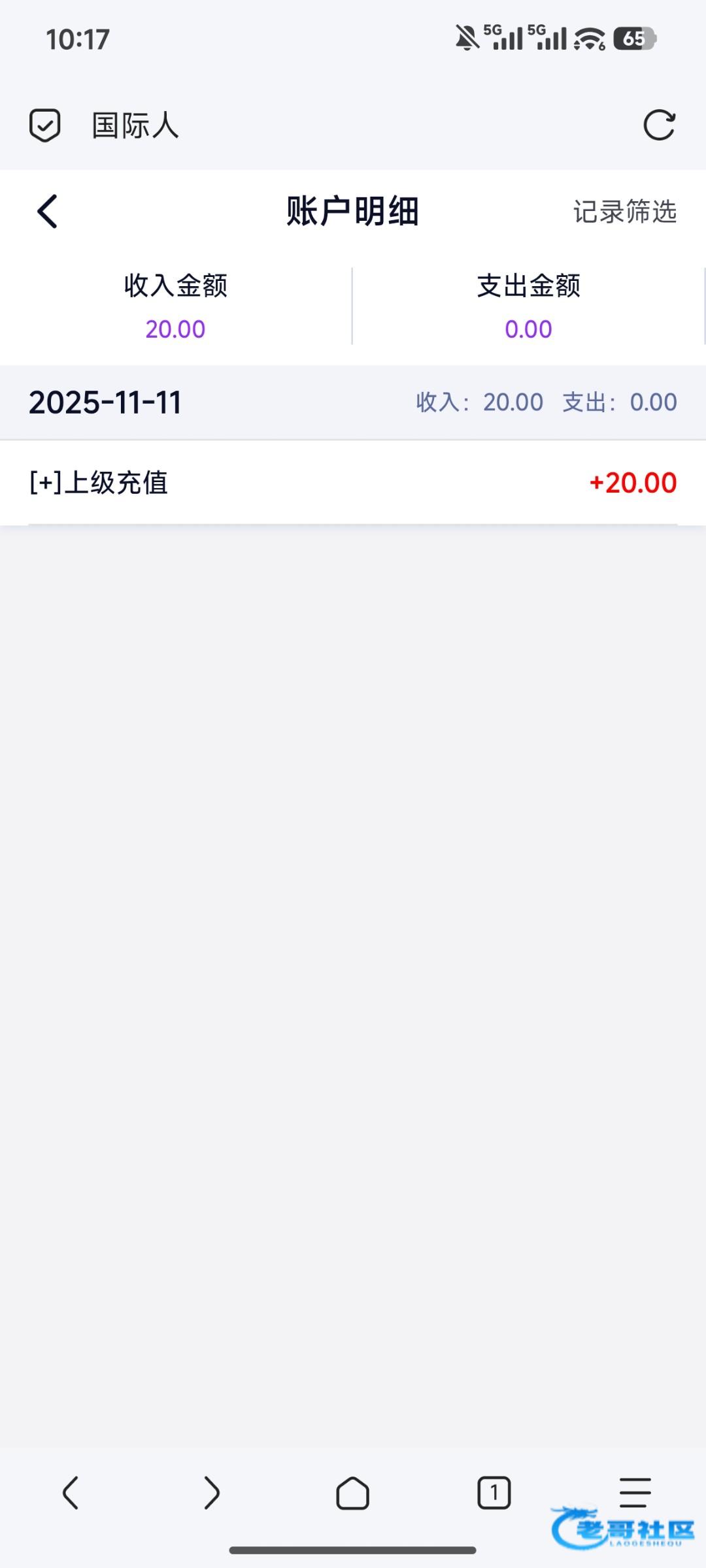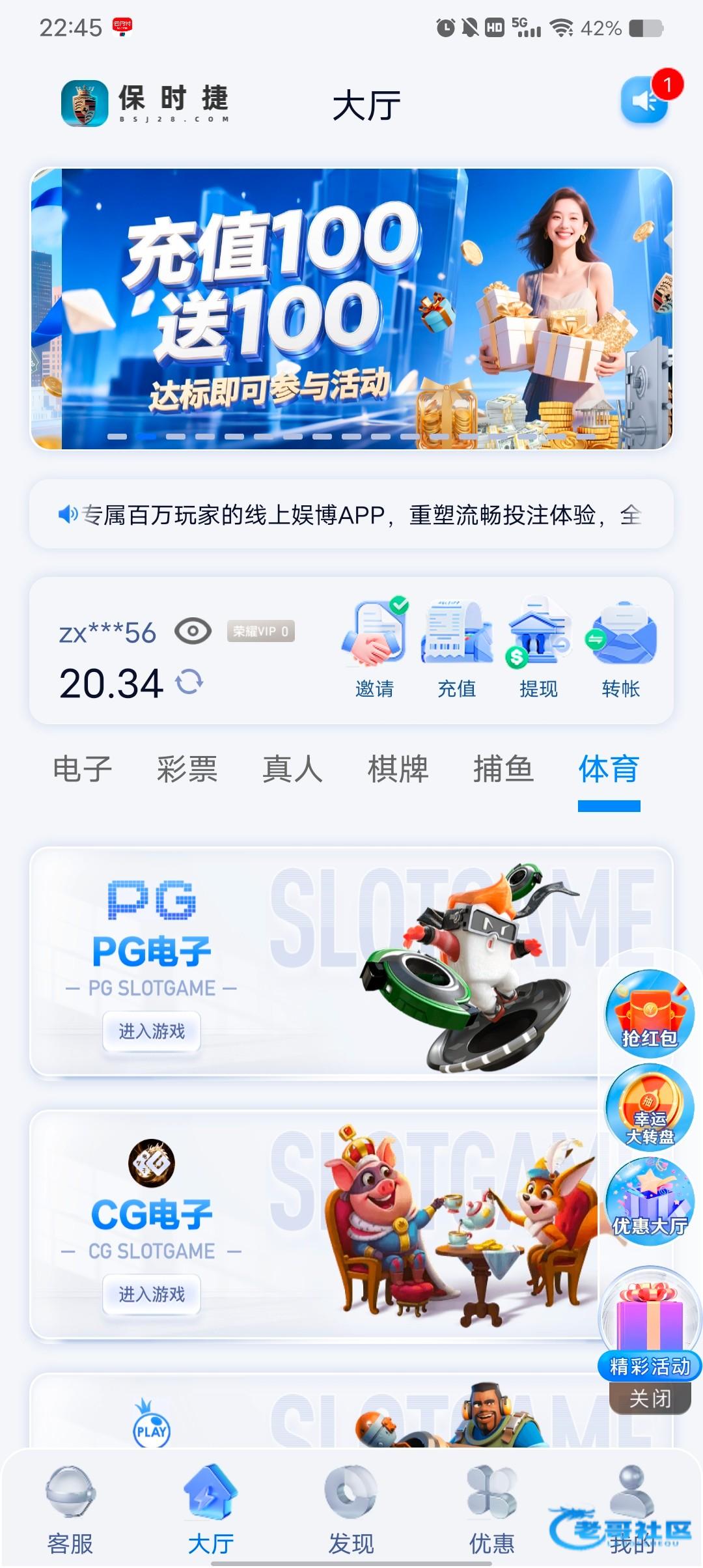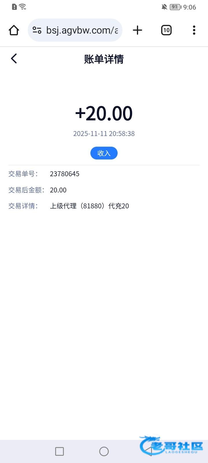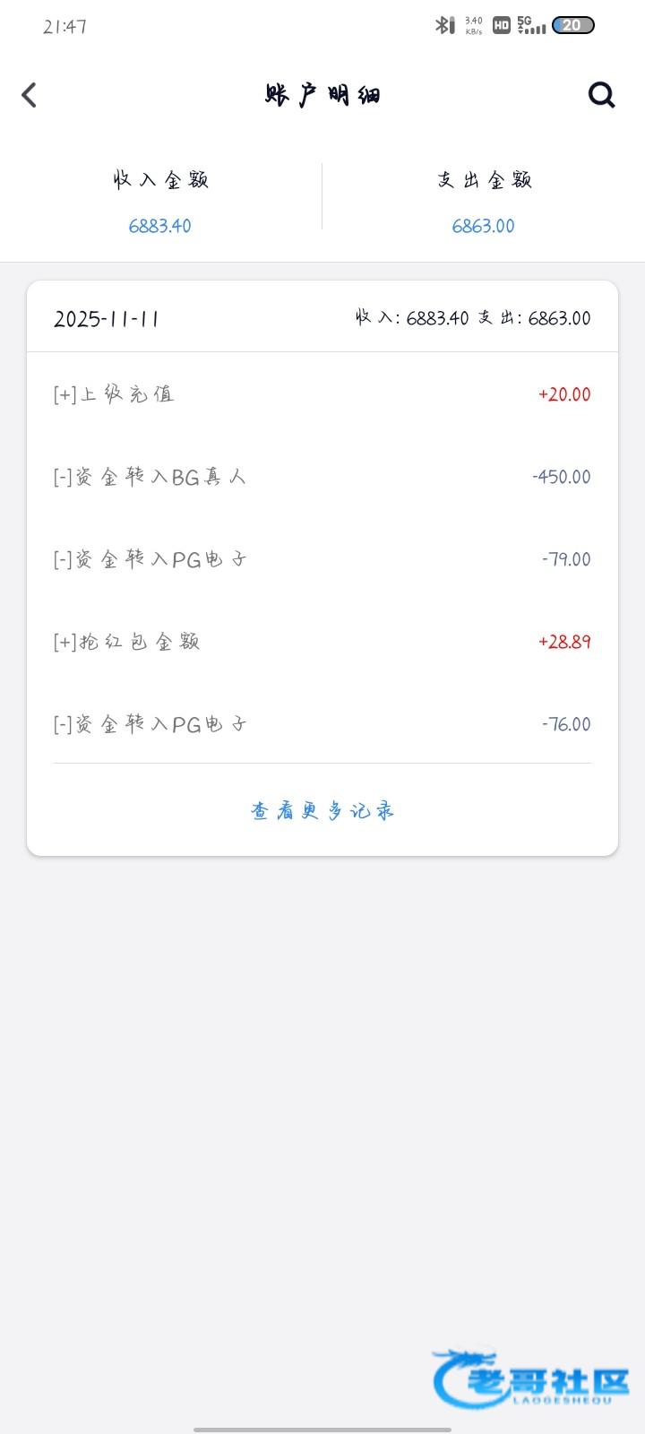 收到老哥20彩金