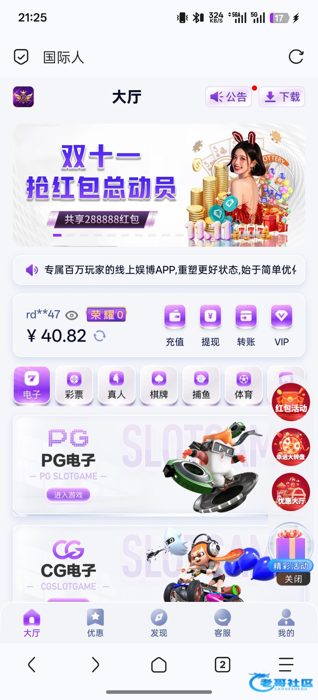 11.11 老哥网.cc 注册菜金(24小时自助领取)!