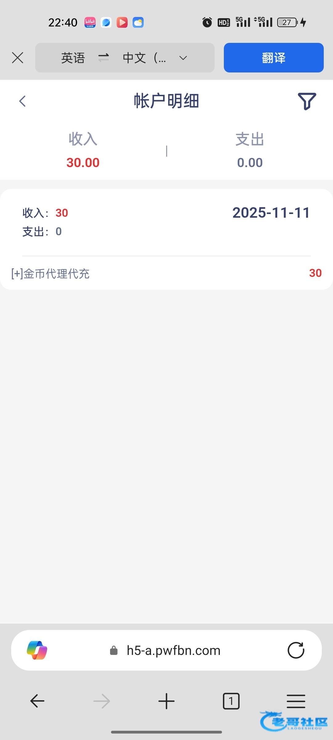 收到30,感谢老哥