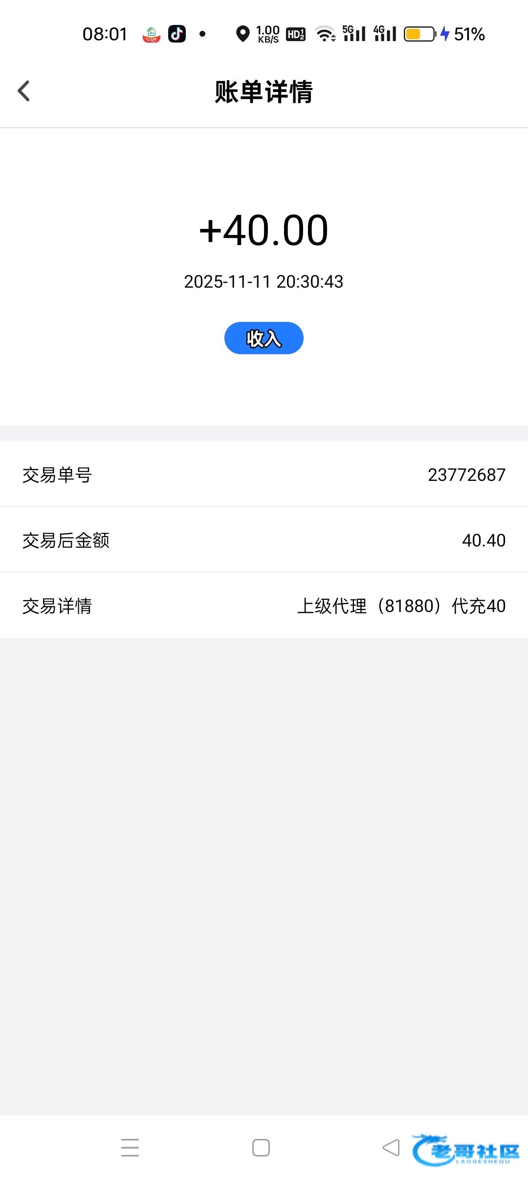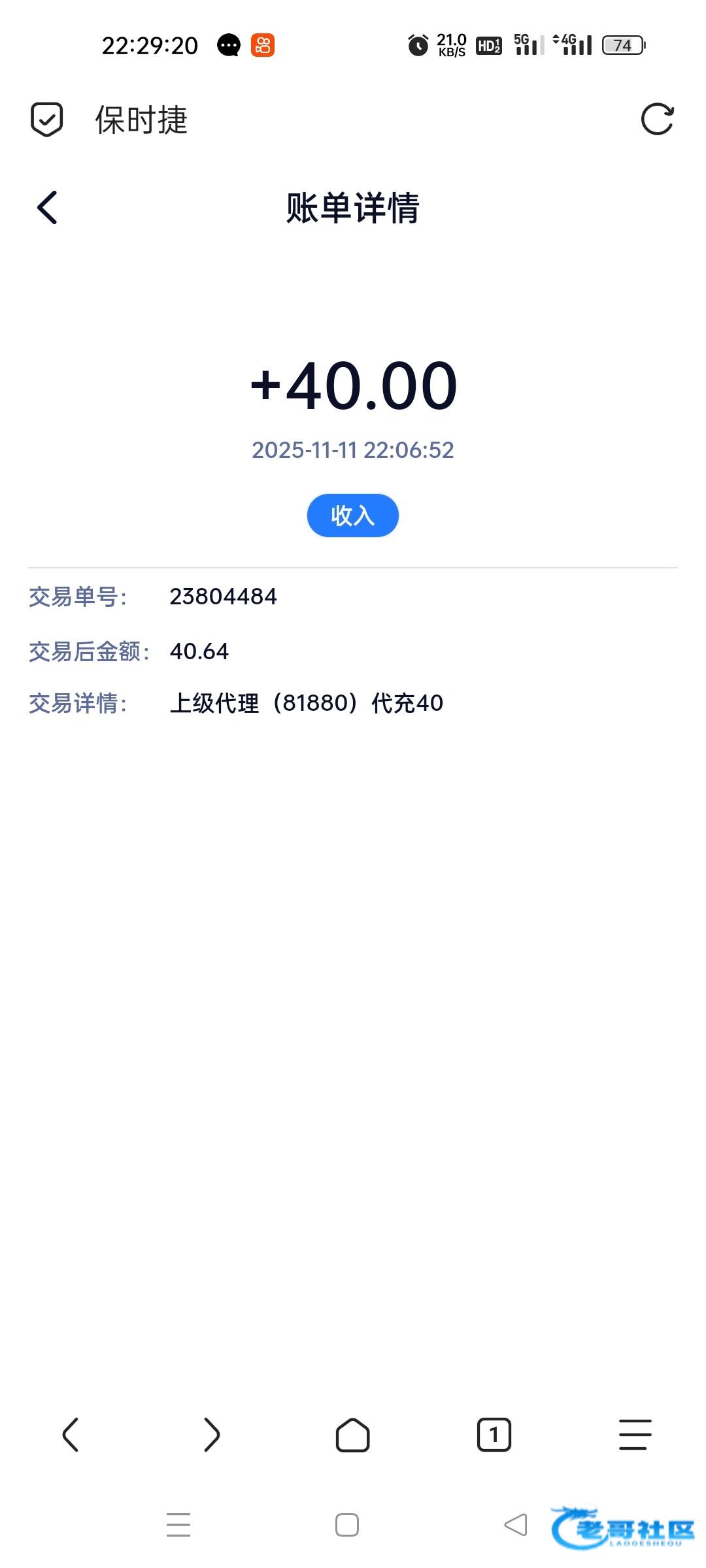 收到老哥50 感谢老哥