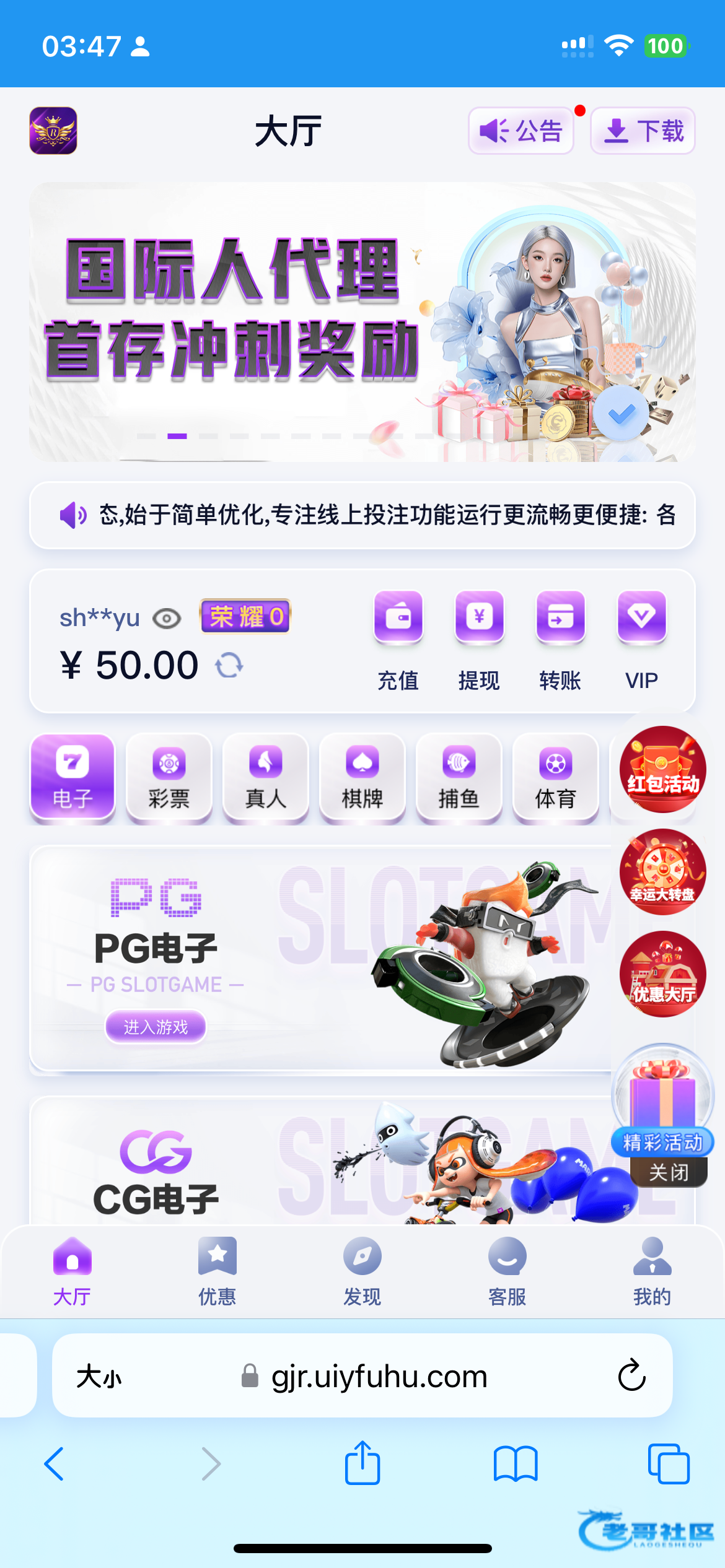 收到老哥活动彩金老哥牛批