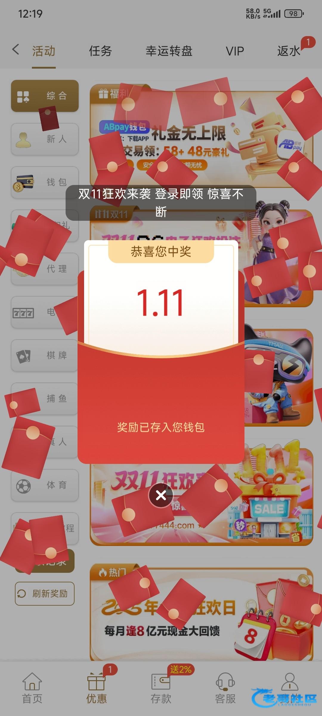 领了20天18站内彩金,没充值,现在连个红包都给封了
