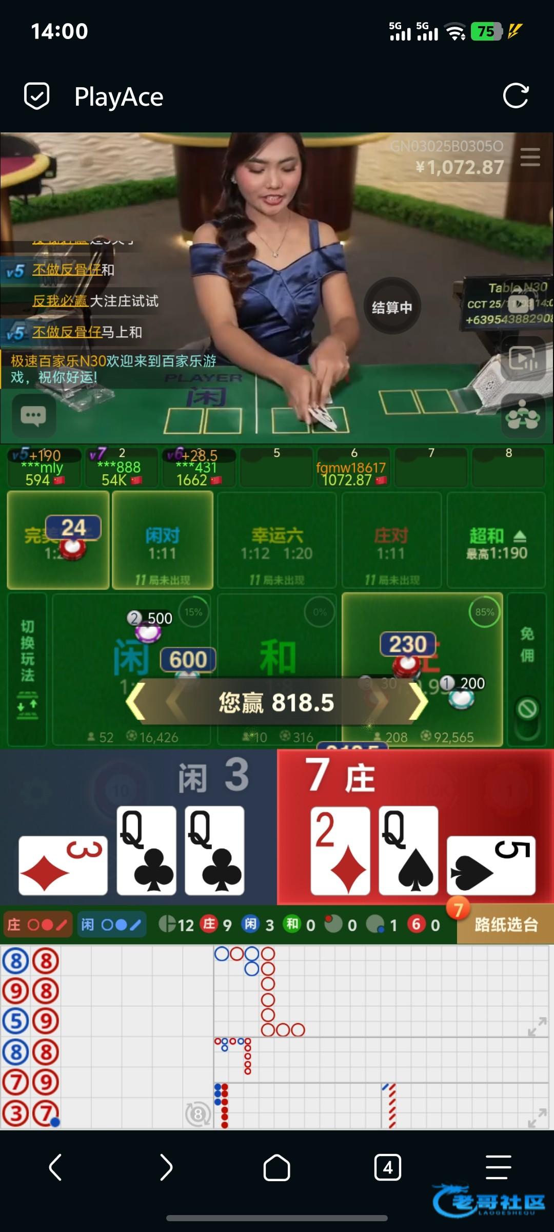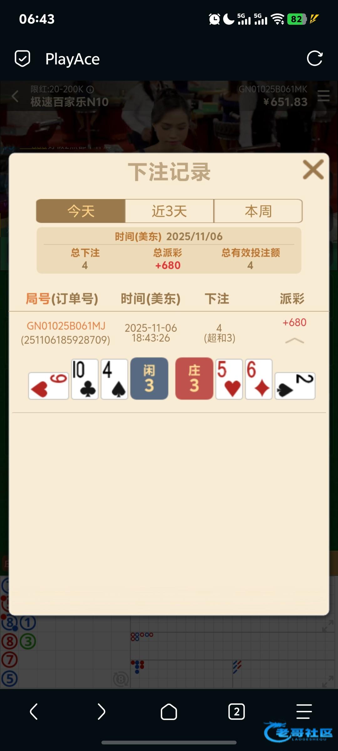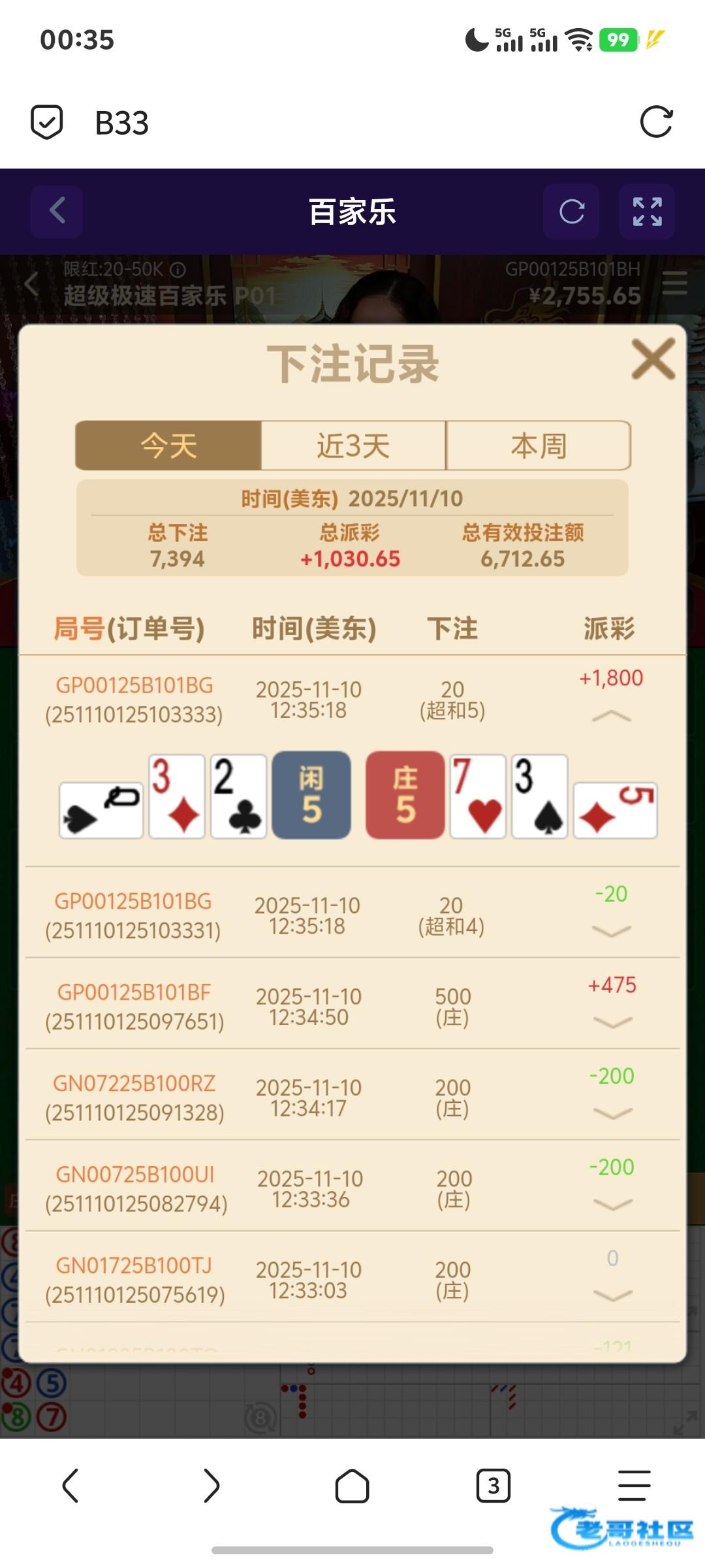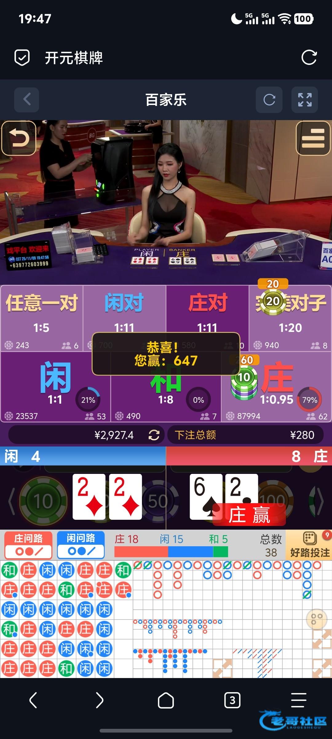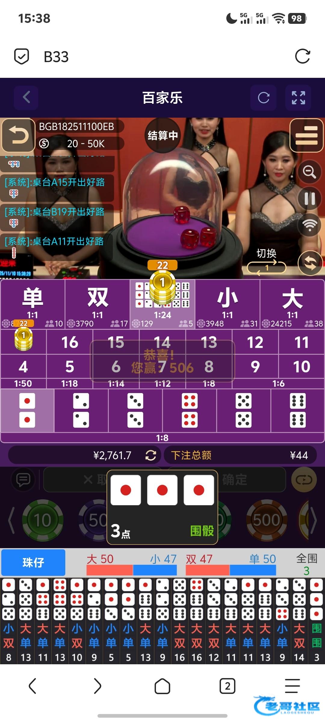各位老哥们你们老哥们,你们打真人带特殊玩法吗,我个人建议还是带点的,说不定中了,我习惯性真人赢一点后面去打电子或者下注带点特殊玩法,说不定中了呢,亏也只亏几十块钱。(发码抽牛子,来老哥网很久了,从来没叫人团过饭,自己红了也给大家发发牛子,图个开心快乐,没必要骂骂咧咧的,也别嫌少,心意在 )