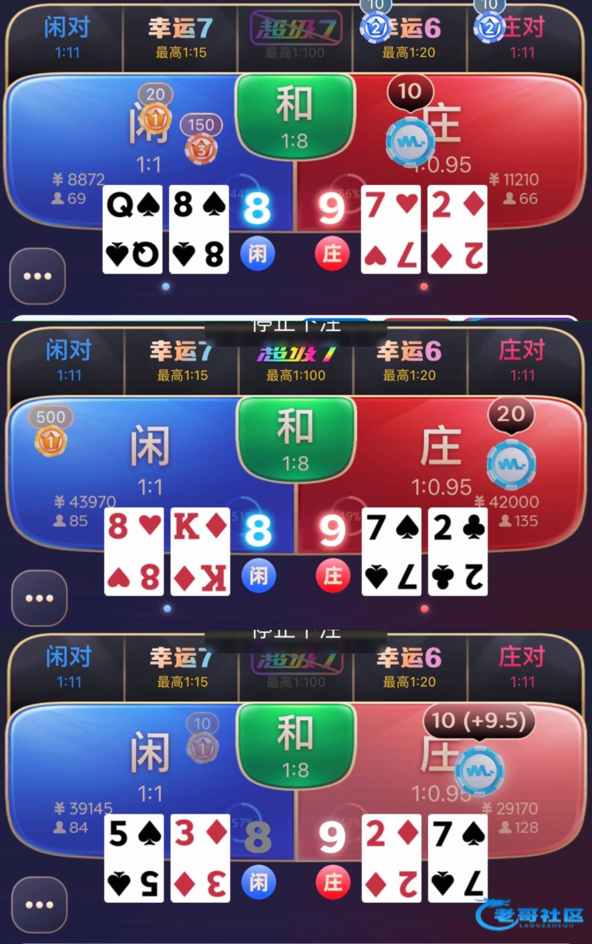 好多9杀8,8杀7,7杀6。然后下注多的平衡的局总有和局搞心态