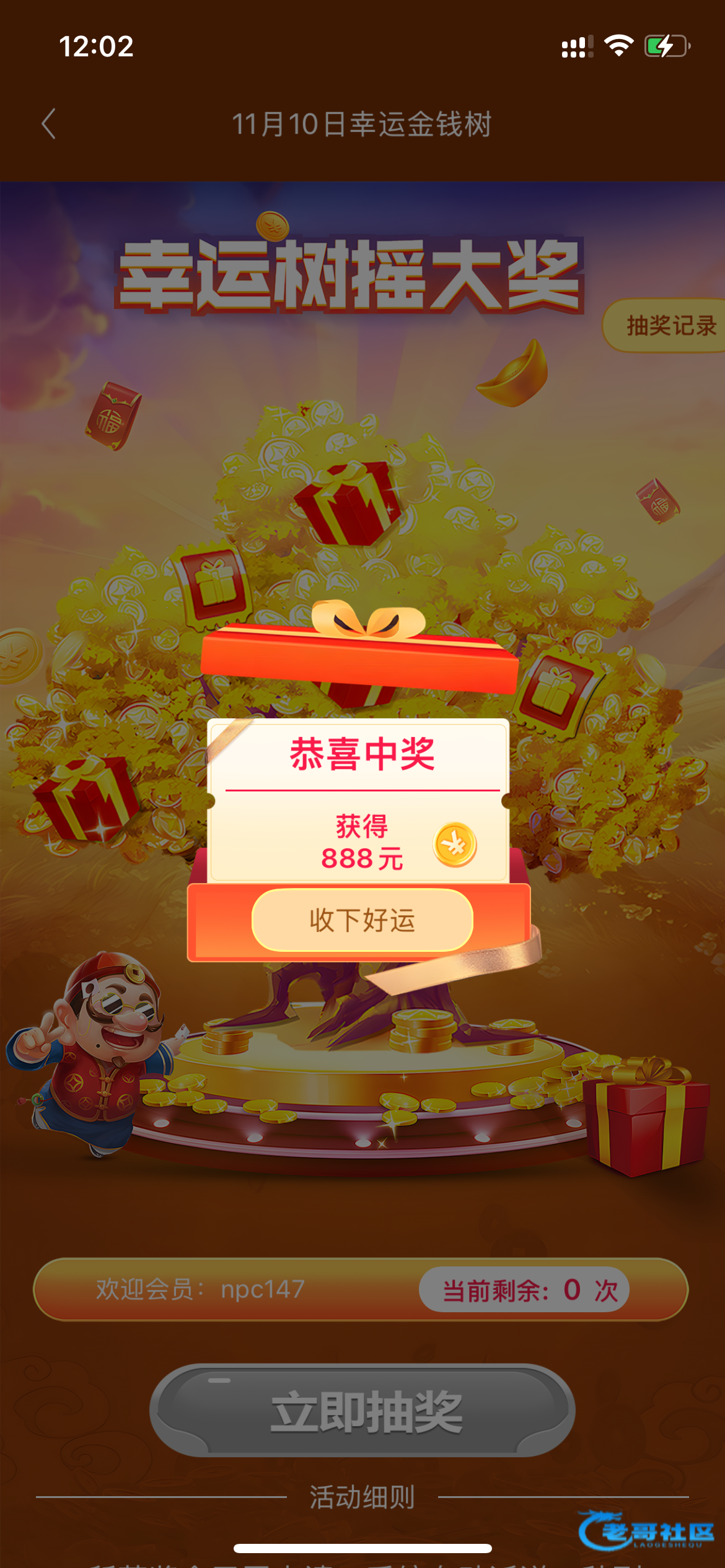 昨天打码了 4000 多,摇了个 888,走狗屎运了