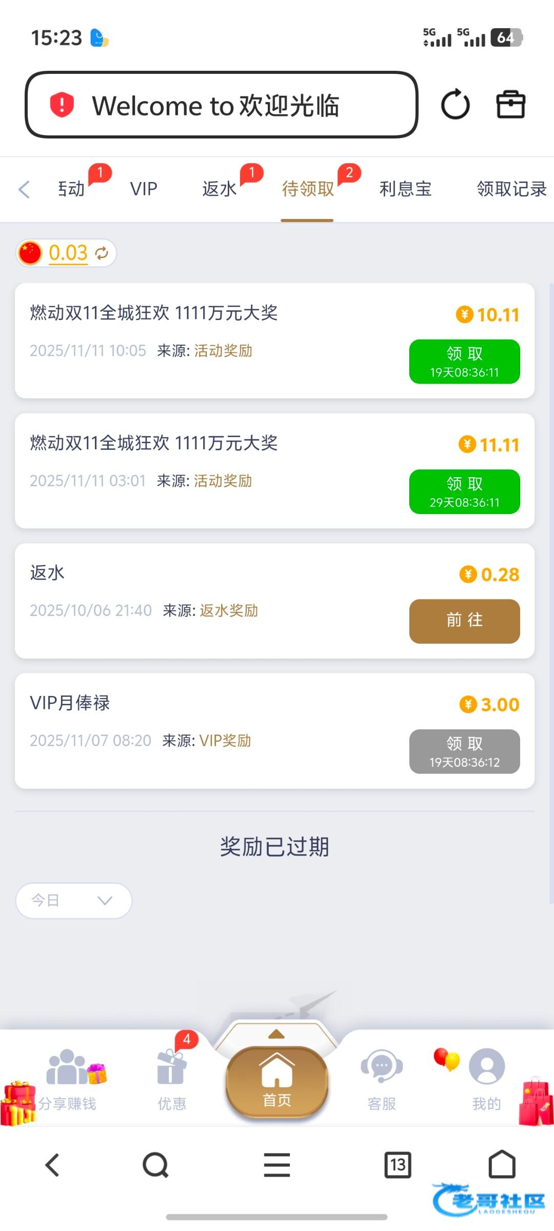 领到1.11元