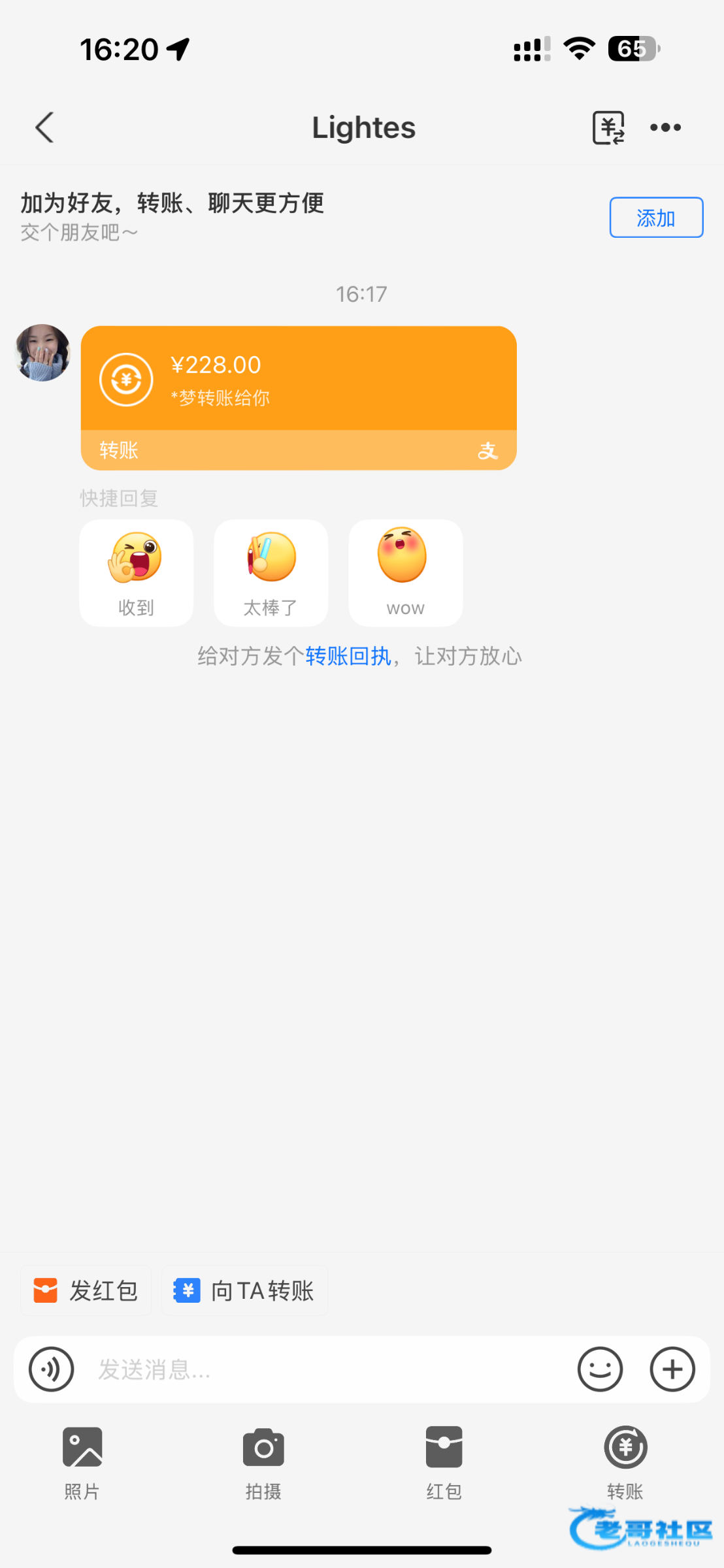 刚才又撸一个,加上的等他回复就行了