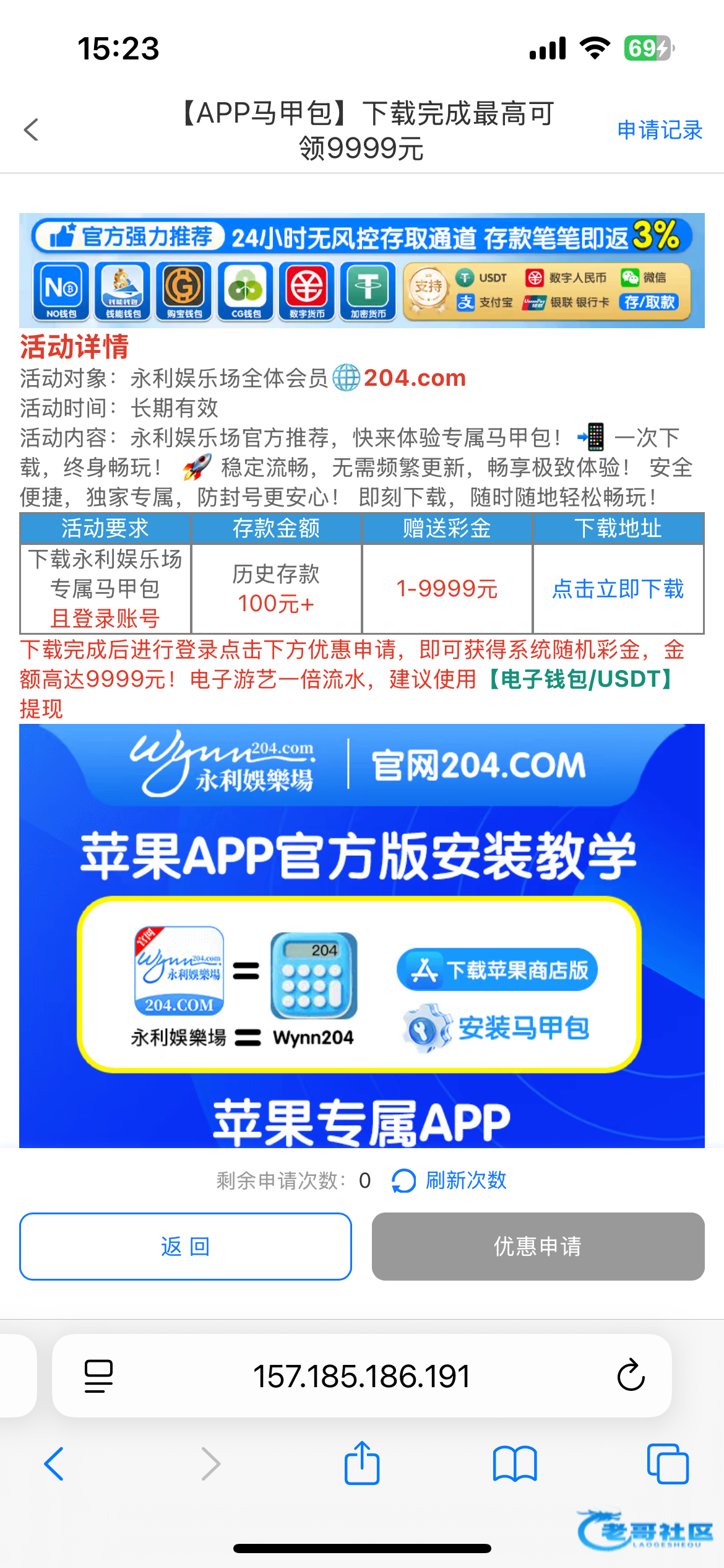 204.com 历史充值过100的申请马甲包 我申请了9