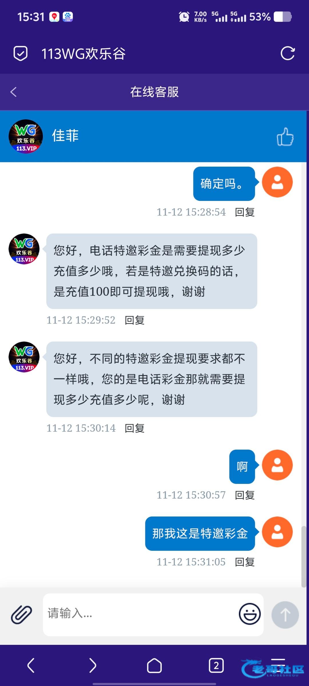 欢乐谷电话特邀28,我随便玩了玩,就打到了300,客服说充值同等金额一杯水,能不能充?