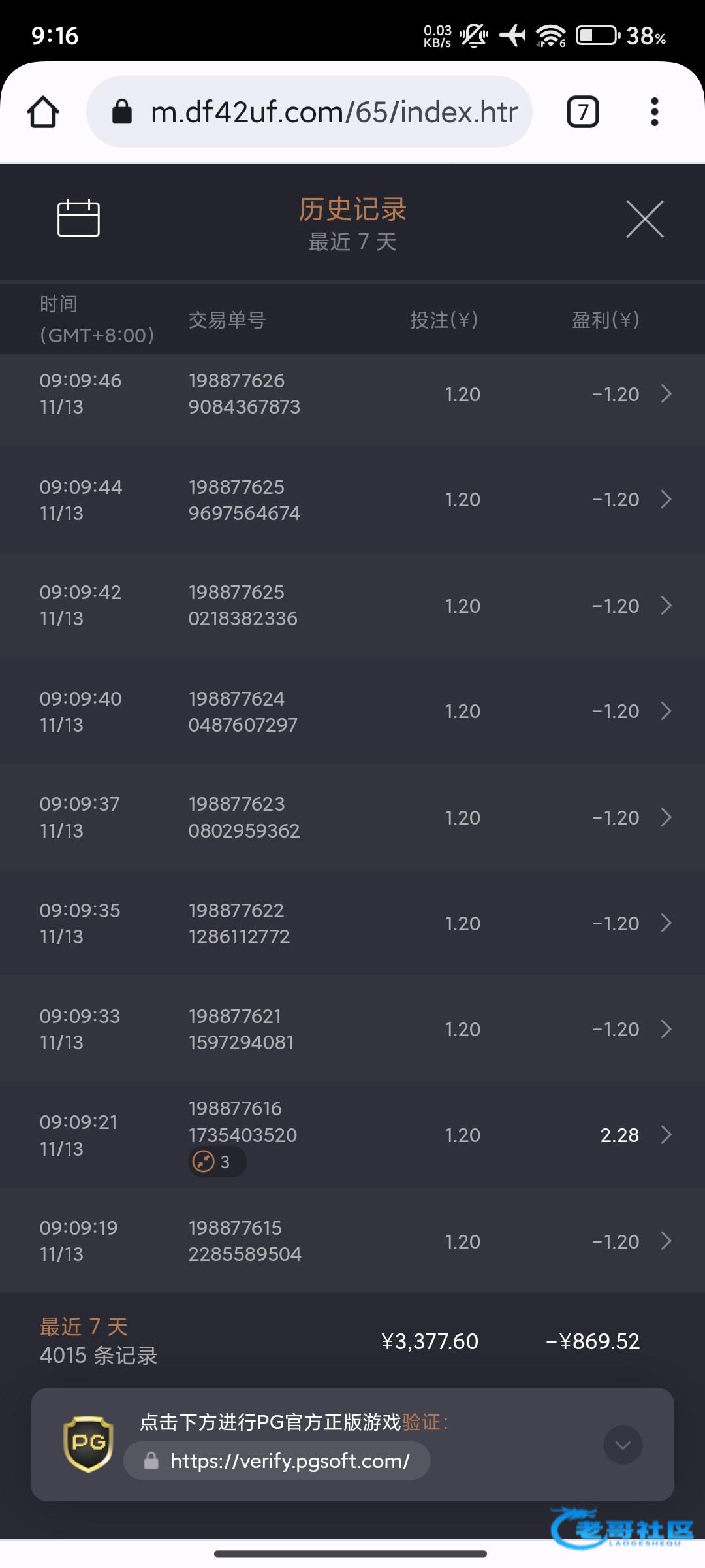 这pg连续杀一个星期了每天一百块,1.2和0.2换着拉一直杀真服了,真手贱,说好了小赌怡情娱乐的我艹了这么坑,想着来个百倍也行了最高也就四十呗,真他马玩到正版了