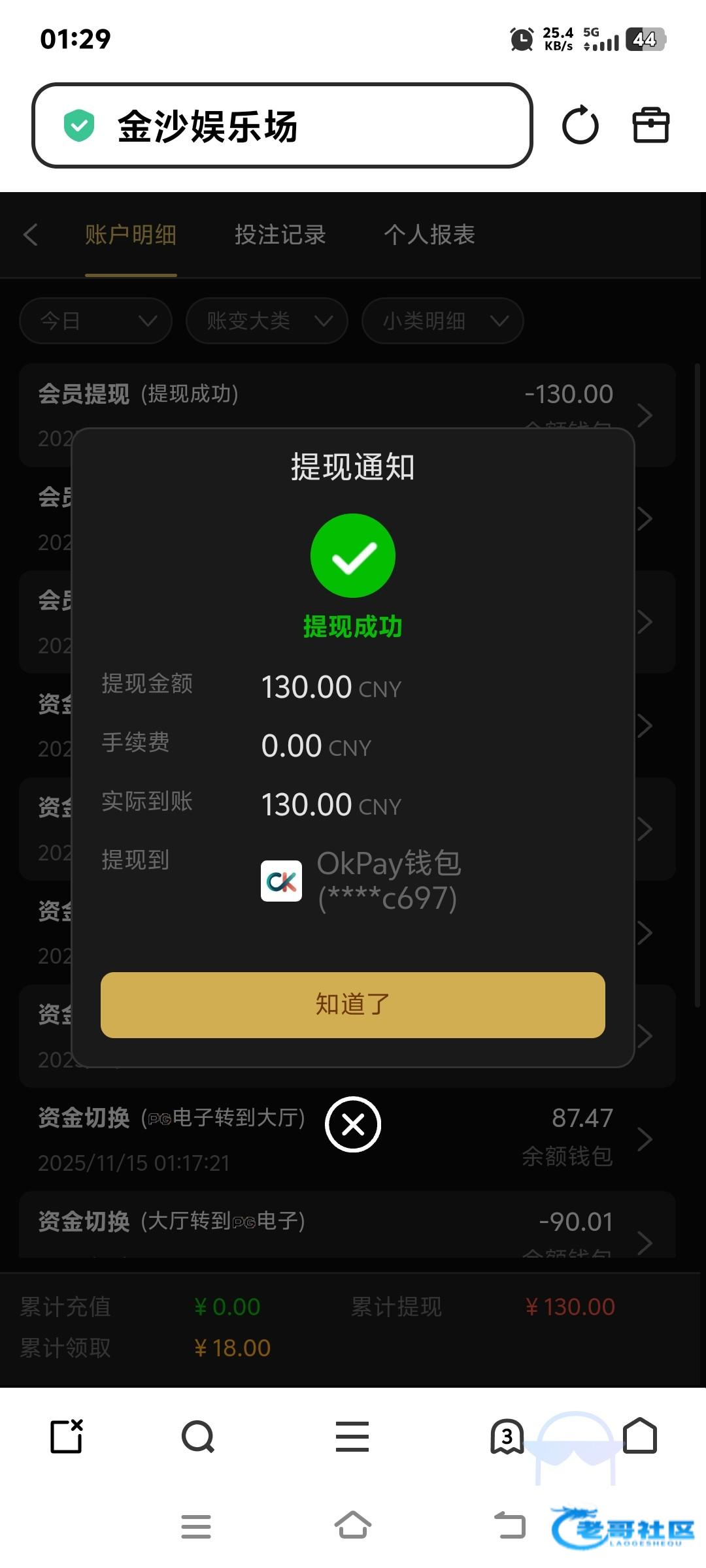 18提了130,之前充值过110