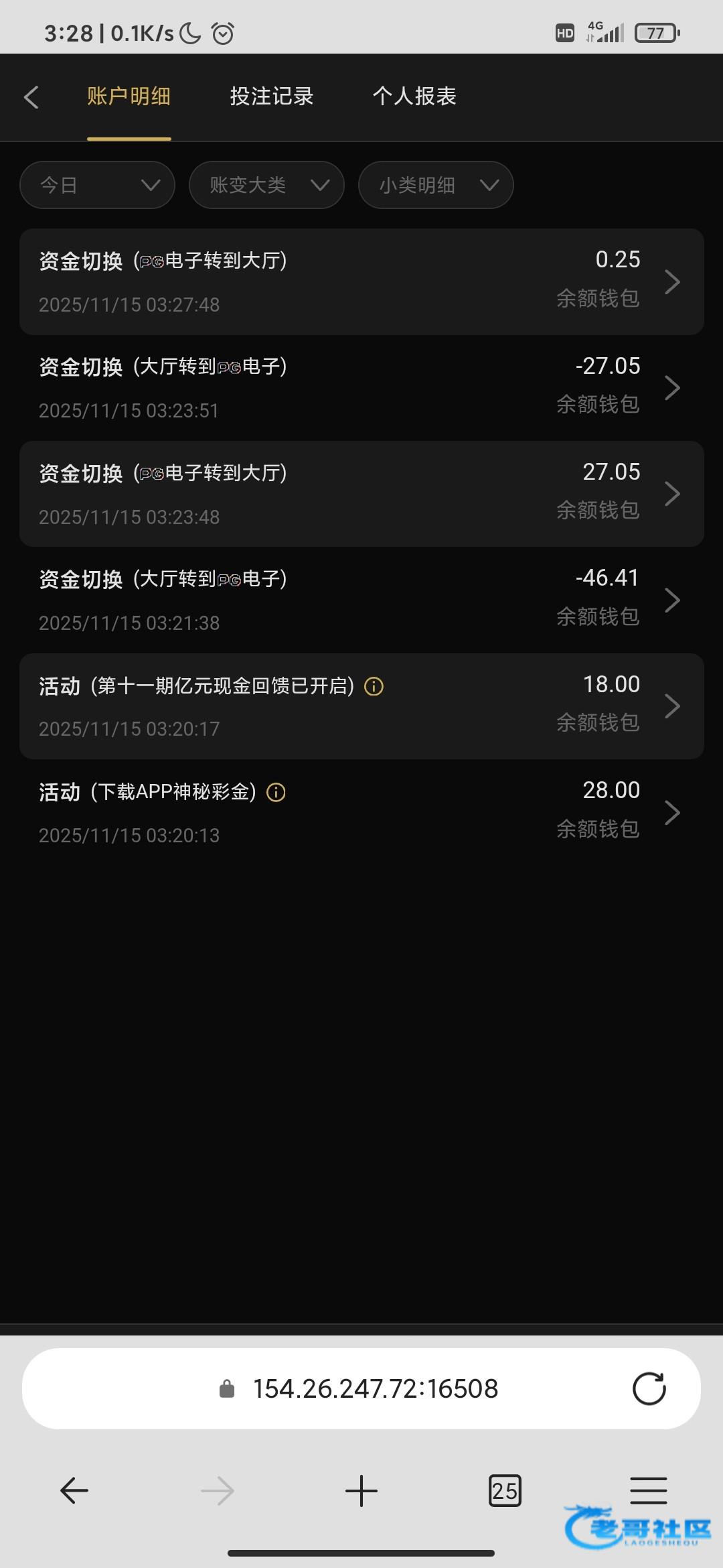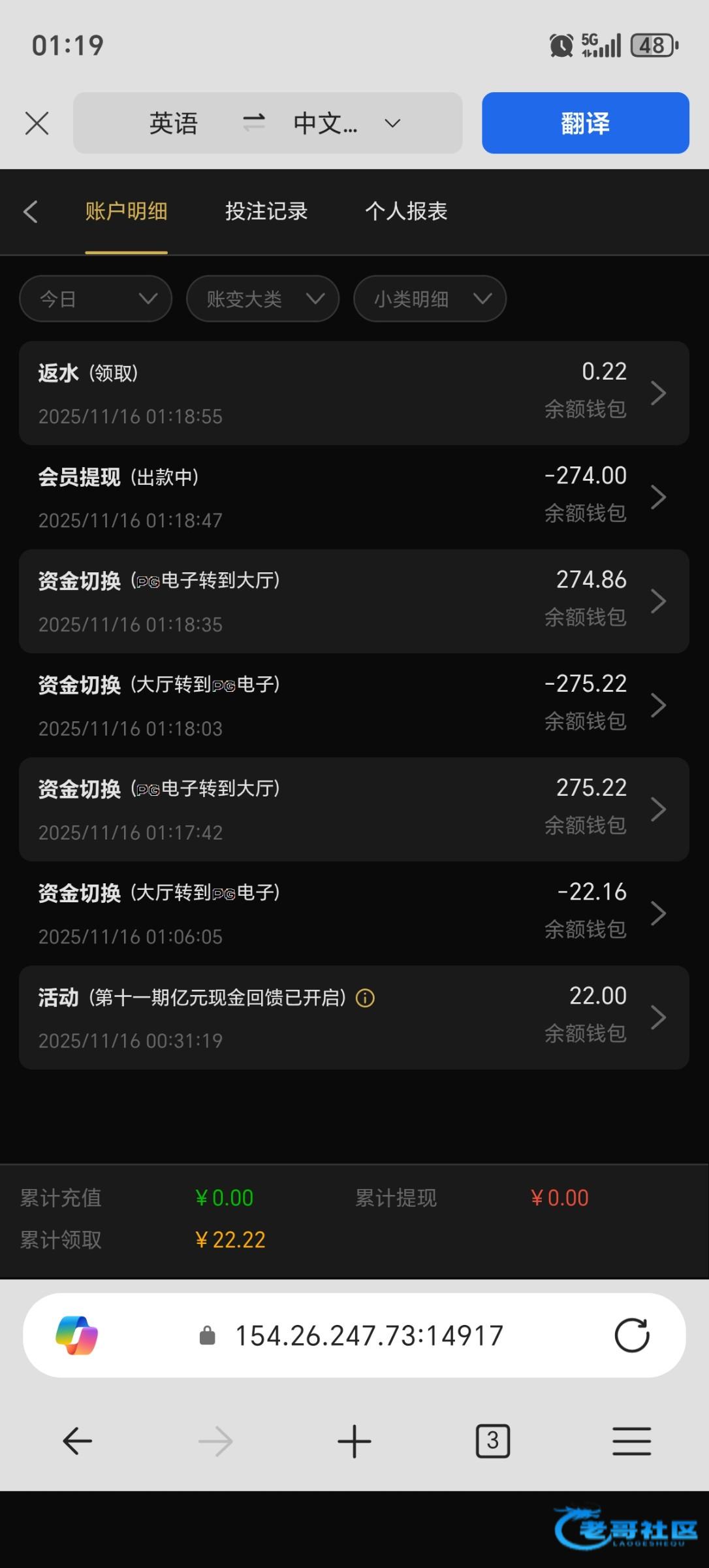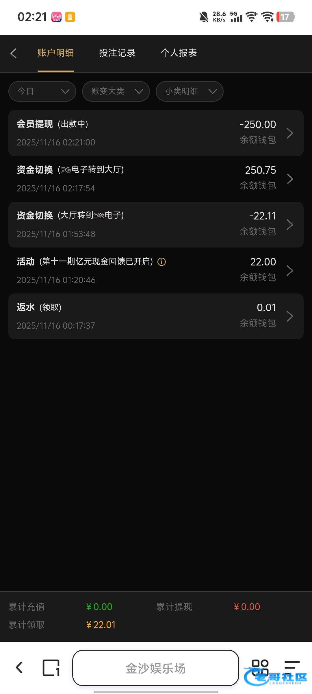 我草了    我提现没到    看注单    所有钱自己下注了