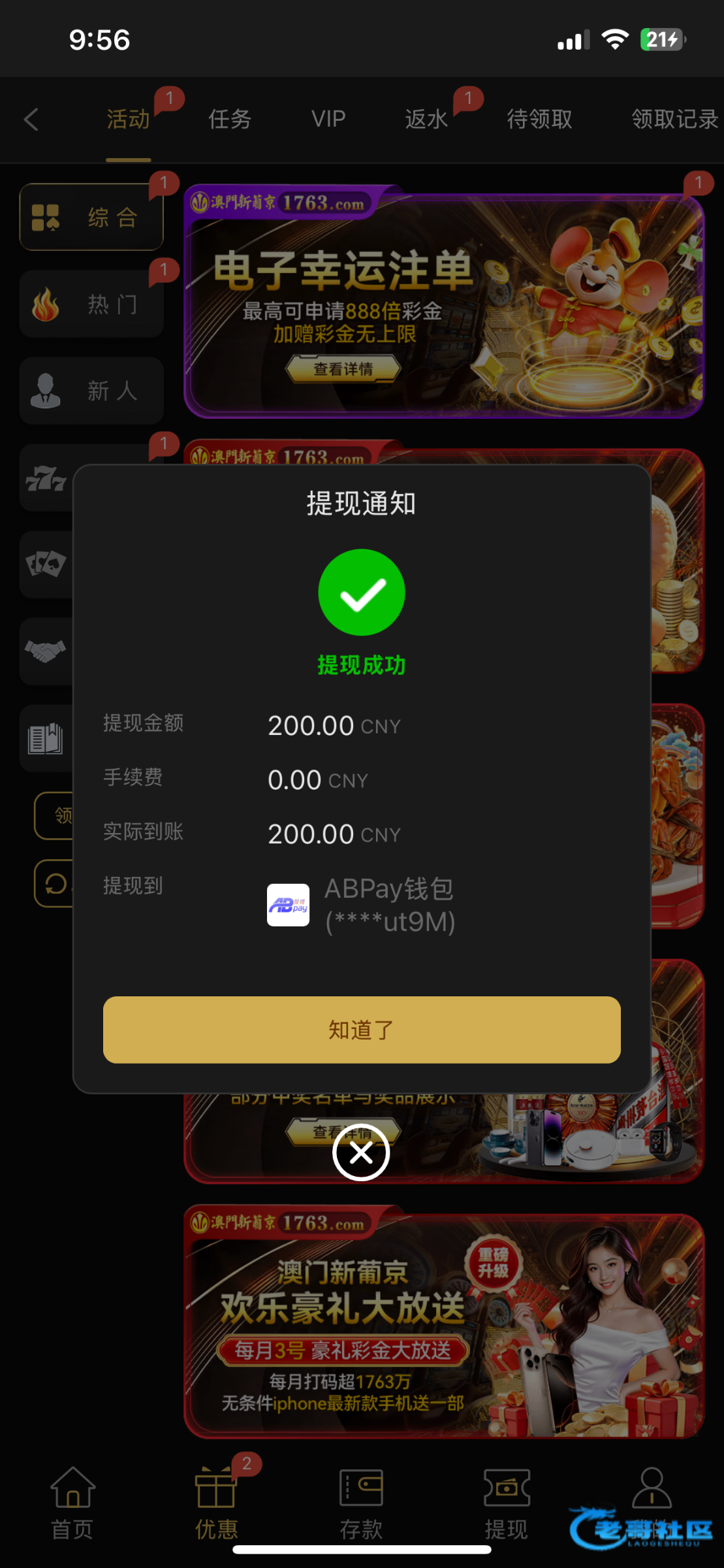 登录上去看活动界面好像是被封优惠了