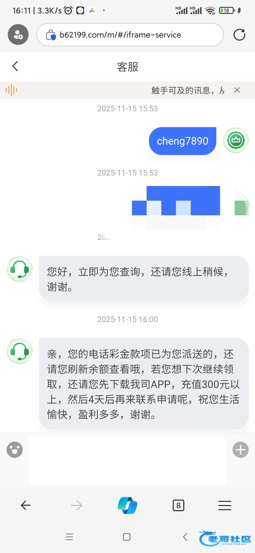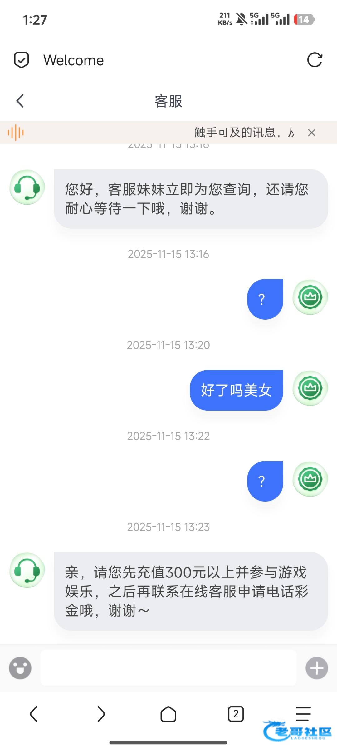 让我充值300以上再去申请,充值了300说我不在名单 他妈的