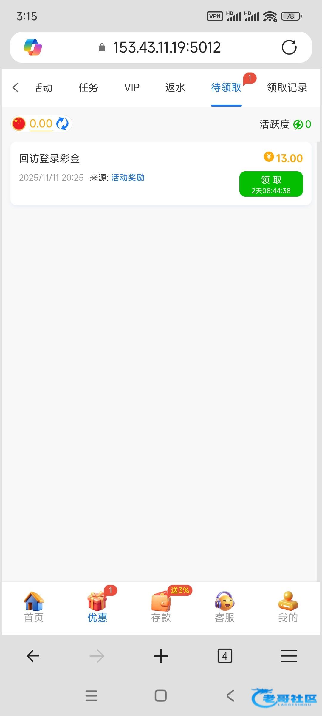 今天刚送几百块,一点水没有,领个首存说多ip,我看更新过了之后都没vip流水,之前都没存过款搞不懂为什么不送