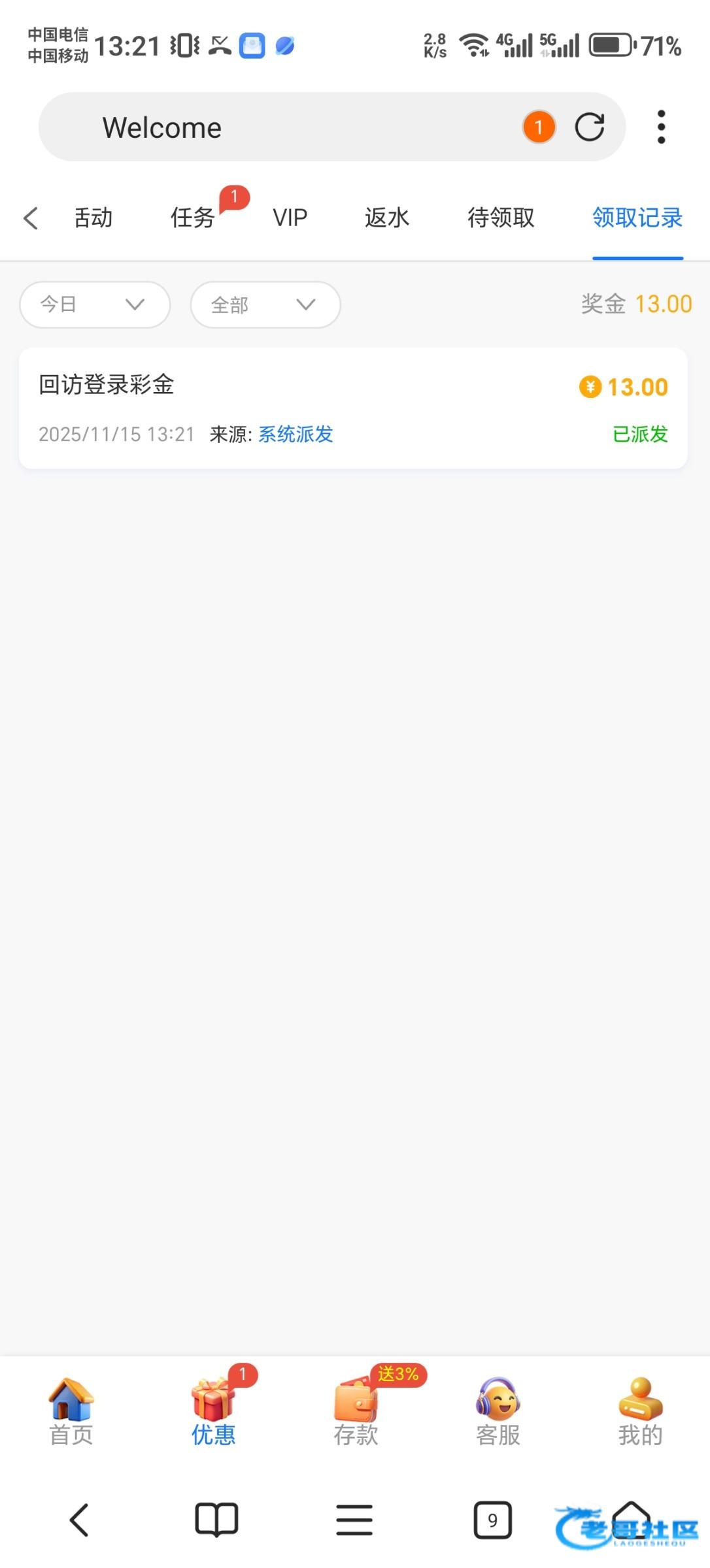 有13,不给领取
