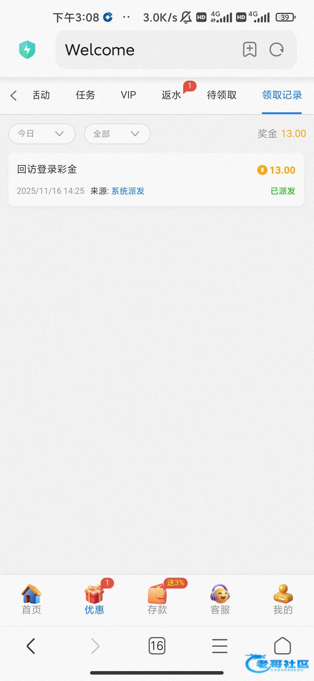 老哥们昨天有个号打出来了提款成功 今天又有一个号有回访彩金 打到100了 老哥们多号能出吗