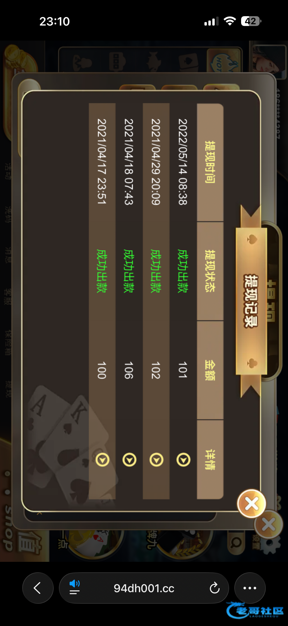 一个94  一个26,都是盈利就封优惠,几年没玩了,当时还黑我了充值好像几百,今年来过一次电话,出了几百,后面又用签到彩金再提,又说活跃不够了,奇奇怪怪的台,明明前面充了50  100